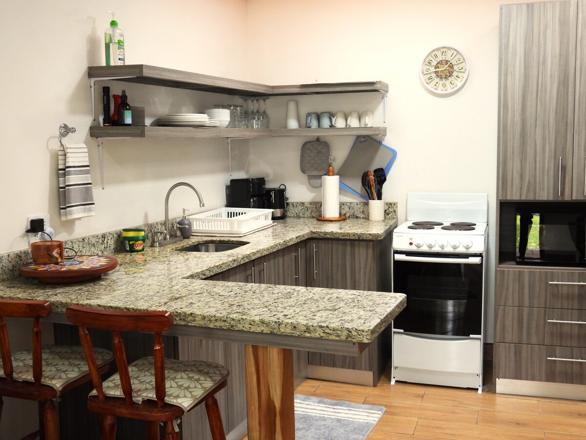 Ідеальний відпочинок безпосередньо за межами Сан-Хосе на пагорбах Сан-Рафаель-де-Ередія в оточенні кавових полів. Кав 'ярня - це повністю обладнаний лофт з найкращим видом на Сан-Хосе з вершини гори, де можна пити місцеву каву, відібрану вручну та вирощену. У абсолютно новому та повністю відремонтованому помешканні є повний кітсен і прекрасний обідній стіл ручної роботи, який розташований перед каміном, покритим каменем. Це місце знаходиться в дуже безпечній і приватній зоні.