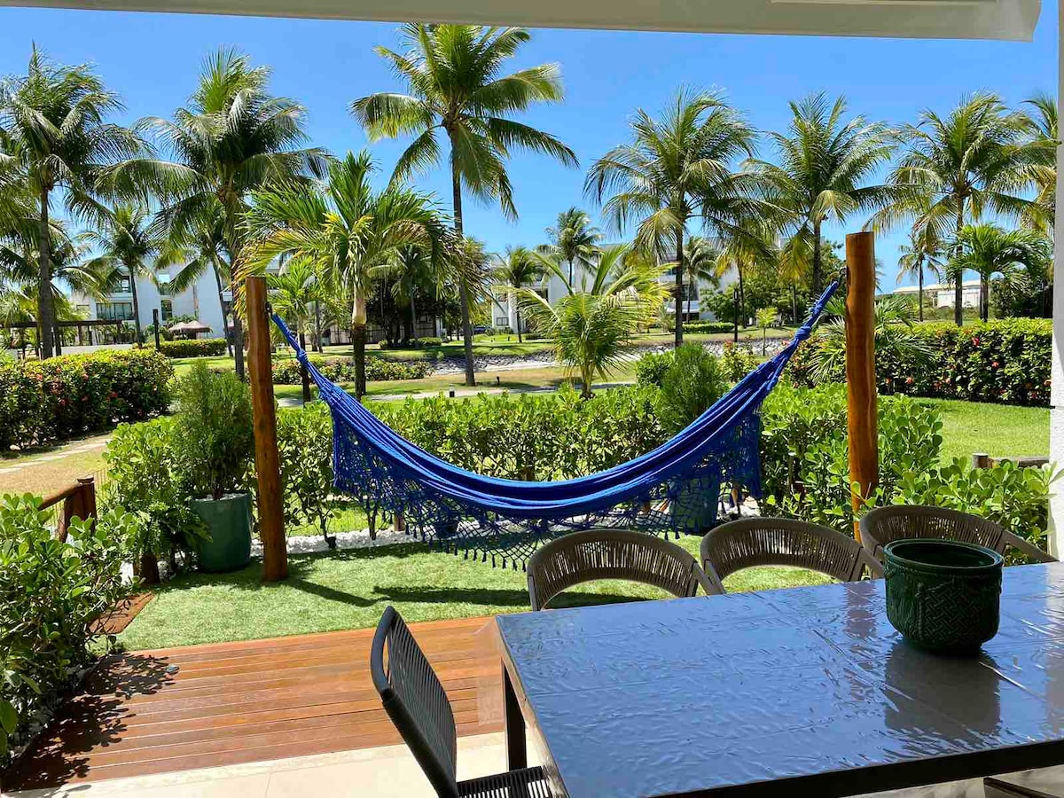 Ласкаво просимо до вашої гавані на краю раю! Помешкання з 2 ванними кімнатами з видом на озеро, розташоване в відомому комплексі Іберостар Прайя-ду-Форте, з цілодобовою охороною. Насолоджуйтеся приватним пляжем, обслуговуючи від намету до піску, з сомбрейросом, пляжними кріслами і дозволяючи вам взяти з собою кулер. У помешканні є повноцінне ліжко, стіл, ванна та кухонні аксесуари, а також пральна машина. Квартира також має розумні вимикачі та обладнана точкою Echo (Alexa).