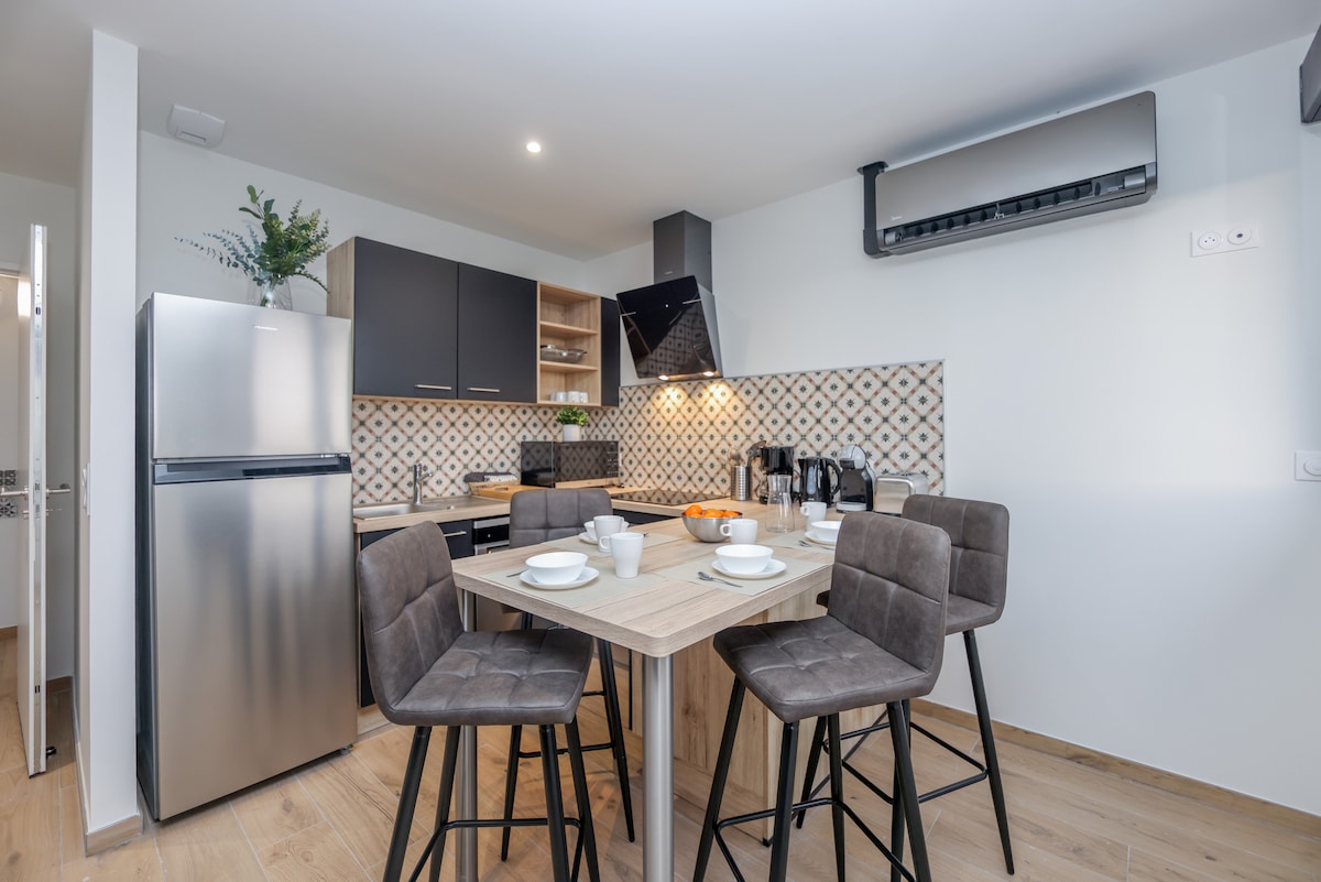 У центрі Кондетт, в колишньому готелі Le Metropole, між морем і лісом, ми пропонуємо вам ці повністю обладнані, просторі (130 кв. м) і світлі апартаменти для всіх ваших перебувань. Індивідуальне та персоналізоване привітання. Відкриті цілий рік без мінімальної ночі. З сім 'єю або друзями ви матимете 3 просторі спальні. Неподалік менше ніж за 5 хвилин ходьби: супермаркет, аптека, м 'ясна лавка, пекарня, тютюн