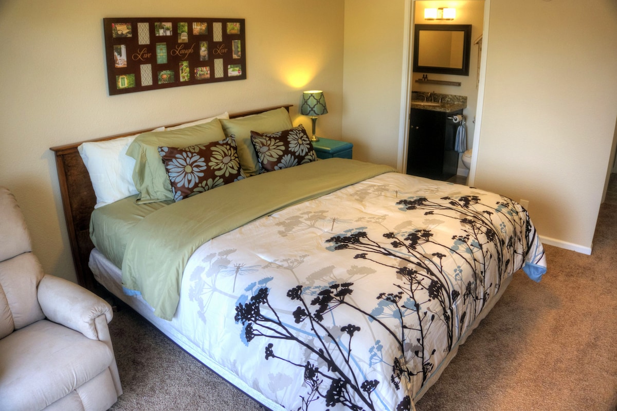 Вітаємо літніх орендарів! Ідеально підходить для подорожуючих медсестер! Тихий і просторий! *Великий майстер із ванною кімнатою з 1/2 ванною, наволочкою з ліжком king-size, комодом, столом *Наволочка для 2-ої спальні, комоди *Повна ванна, ванна та душ із захисними поручнями. * Диван-ліжко La-Z-boy *Центральний кондиціонер та опалення, стельові вентилятори. *Окремий балкон *Вид на схід сонця. *Гідромасажна ванна та басейн (спільний) *Критий паркінг *Газові барбекю (спільні) * Лише для 4 осіб. Лише для віку від15 років. Без домашніх тварин. Куріння заборонено. Винятків немає.