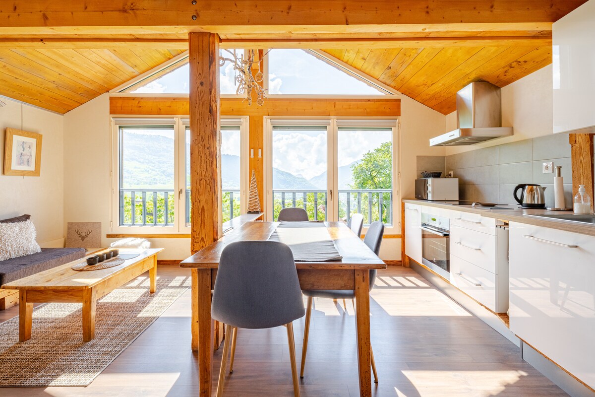 Ця яскрава, затишна студія з видом на гори розташована між Аннесі та Женевою. Це ідеальне місце для відпочинку або роботи в Верхній Савойї. Тихий, у зеленому середовищі, він знаходиться в 3 хвилинах їзди від доріг (A 410) від залізничного вокзалу Sncf (Léman Express) та центру невеликого містечка Ла-Рош-сюр-Форон. Це дозволить вам урізноманітнити свої відкриття: гори, озера, відвідування символічних міст Женеви, Аннесі, Шамоні, Івуар.