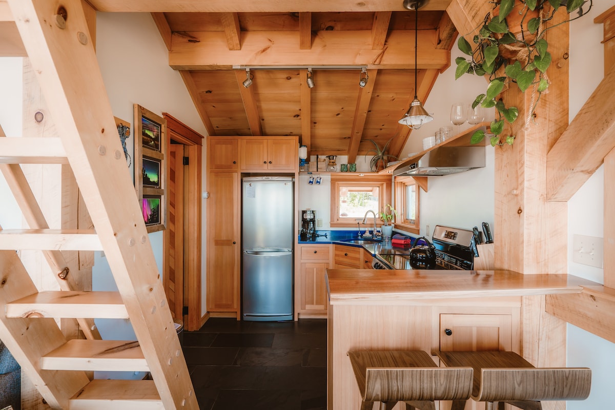 "Minnesota's Coolest Airbnb" by Condé Nast and seen on HBO's Cabin Chronicles, Agua Norte is only 4 miles from Grand Marais. With Lake Superior views and a skylight above the bed for stargazing and Northern Lights magic, our cabin is perfect for nature-loving guests looking for peace, quiet, and cozy, but still be near town. Sit out on the large cedar deck and watch the waves crash on Five Mile Rock, stroll to the beach across the road, take a sauna, have a bonfire, and hike our trails.