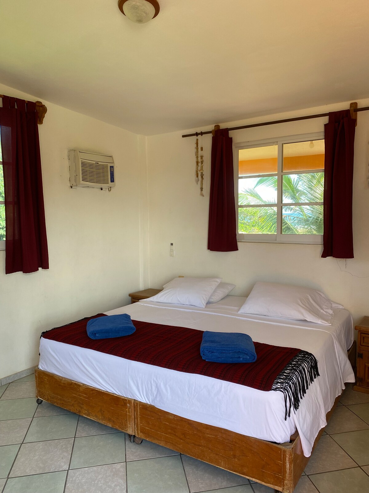 En Sirenito Macho, tu refugio frente al mar, te espera una amplia y cómoda cabaña con cama king size, baño completo y una terraza privada con una vista espectacular al océano. Ideal para dos adultos y un niño pequeño, este espacio combina confort y naturaleza en perfecta armonía.