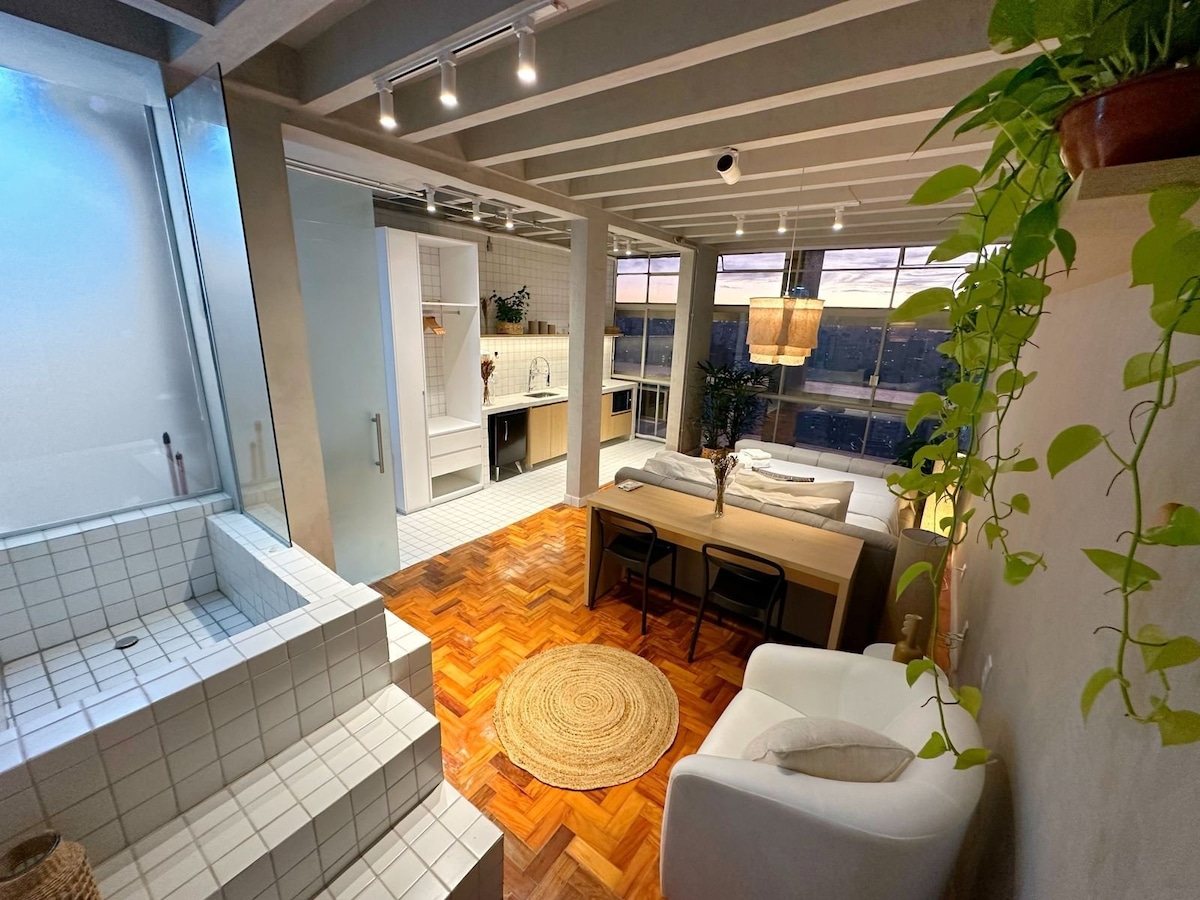 Estúdio espaçoso com muito design, arquitetura e a melhor vista de São Paulo. Loft completo! Com cama queen, closet, ar condicionado silencioso, cozinha completa, home office, WI-FI, TV 55” e uma belíssima banheira de imersão, de onde pode apreciar o seu drink preferido e curtir uma vista apaixonante. São Paulo toda estará há poucos minutos de você. Acesse o metrô andando apenas 200m. Reserve com tranquilidade! Proporcionaremos uma excelente hospedagem e uma ótima experiência!