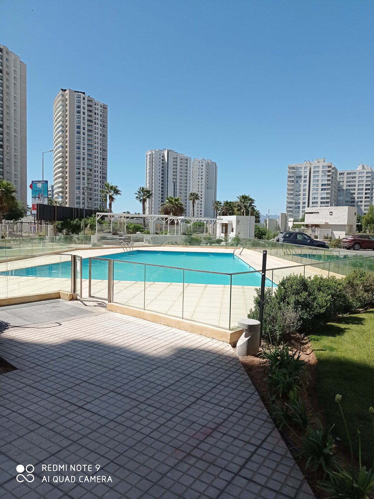 Departamento en primera línea en Avenida del Mar, con espectacular vista y una ubicación ideal. Cercano a restaurantes, cafeterías, y casino Enjoy. El departamento ofrece un ambiente acogedor, cómodo, e ideal para viajes cualquier época del año. Totalmente equipado, cuenta con wifi, TV, sábanas, toallas, horno, microondas, cafetera, parrilla eléctrica y todo lo necesario para una experiencia práctica y agradable. Además, de contar con piscina, perfecta para relajarse y aprovechar al máximo.