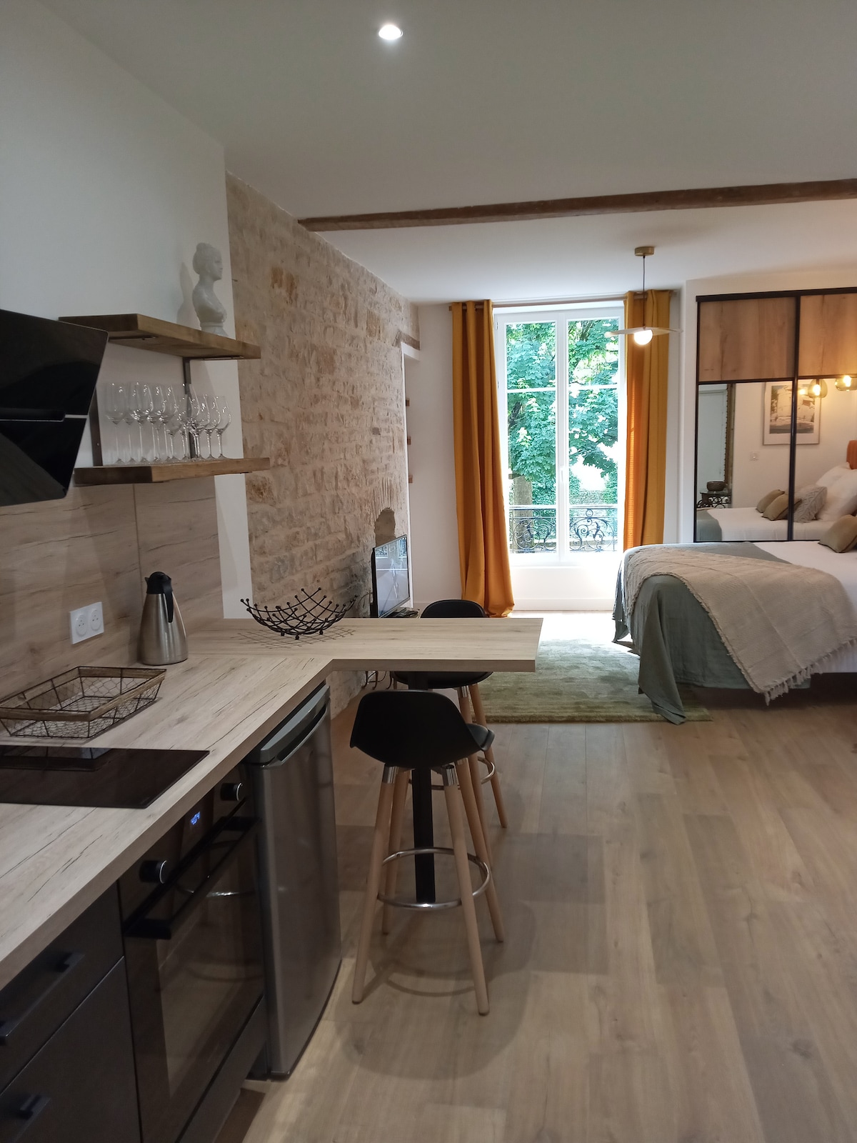 Квартира площею 35 кв. м розташована під дахами будинку історичного пам 'ятника XVI століття. Він ідеально розташований в центрі історичного центру Діжона, в районі Антикварів, недалеко від Палацу герцогів та Музею образотворчих мистецтв. Він був повністю відремонтований у автентичному та теплому дусі з усіма сучасними зручностями.