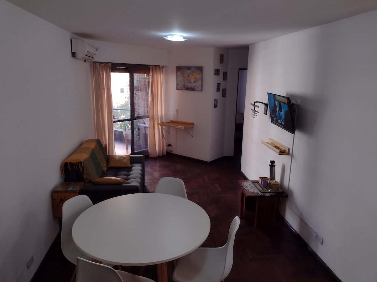 El departamento, situado en la ciudad de Cordoba, Argentina, es muy luminoso. Está ubicado en el 2º piso del edificio, es interno, por lo que la tranquilidad está garantizada. Posee un dormitorio con sommier de dos plazas (1,40 m), con aire acondicionado split frio calor, smart tv de 32", directv. Cocina comedor totalmente equipada con microondas, pava eléctrica, tostadora, frigobar con congelador y todos los utensilios. Plancha con tabla de planchar de apoyo. calefactor en la cocina comedor