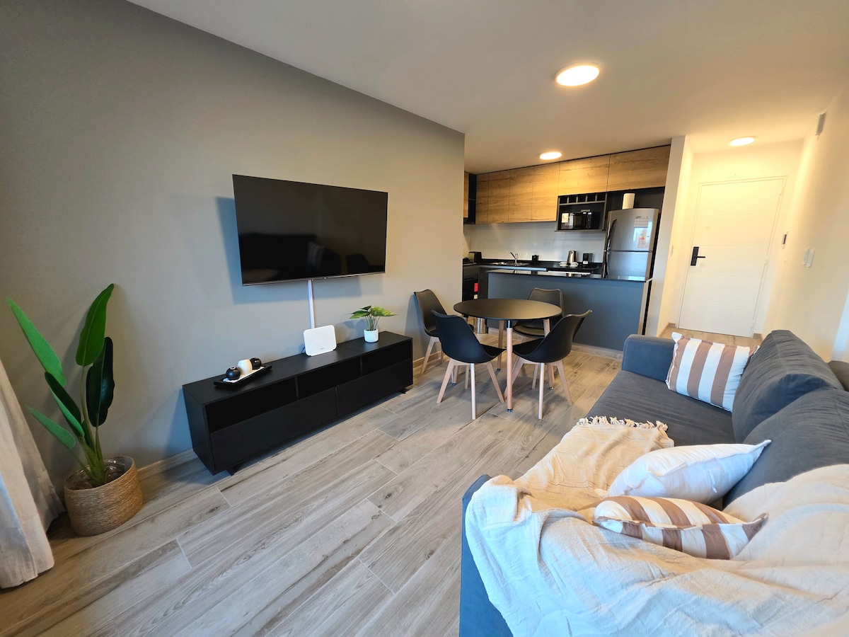 Ця красива та унікальна квартира - сучасний , яскравий і затишний простір. Тут ви знайдете все необхідне, щоб зробити ваше перебування чудовим і безпрецедентним. Розташоване в Барріо-Жарден, повне барів, ресторанів, магазинів, магазинів і всього необхідного, щоб зробити ваше перебування чудовим Завдяки продуманому дизайну ця квартира пропонує вам справді унікальні враження. Ідеальне поєднання стилю та комфорту