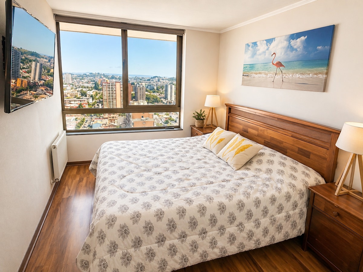Departamento totalmente equipado, ideal para turistas que buscan comodidad y excelente ubicación. A minutos del aeropuerto, terminales y centros comerciales. Cocina full equipada para preparar lo que desees. Baño con toallas, jabón y shampoo. Conexión WiFi disponible. Entregamos recomendaciones locales y rutas turísticas. Estacionamiento (altura máx. 2,10 m). Ofrecemos traslados en van para conocer Concepción. (Segunda habitación disponible desde 3 huéspedes)