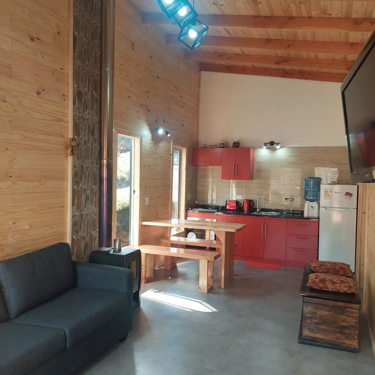 Mini cabaña ubicada en el pueblo de Curarrehue, perfecta para quienes buscan aventura, naturaleza y descanso. Desde aquí podrás explorar lagos, cascadas, termas y realizar trekking entre bosques de araucarias, rodeado de paisajes únicos del sur de Chile. La cabaña cuenta con dos dormitorios, ambos con baño privado, cocina equipada y wifi, ofreciendo comodidad y privacidad después de un día de exploración. Un punto de partida ideal para descubrir los atractivos de Curarrehue y sus alrededores.
