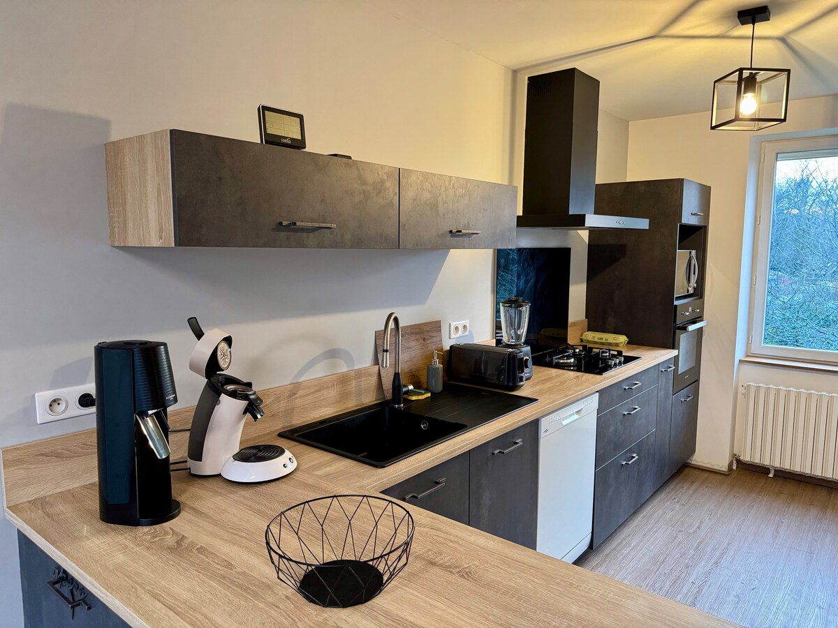 Чарівна квартира з кондиціонером площею 60 кв. м, розташована в центрі міста Брів. Відремонтована квартира поблизу всіх зручностей. У вас буде БЕЗКОШТОВНИЙ ПРОПУСК НА парковку на цілодобовому 🅿️ підземному паркінгу, який знаходиться перед квартирою. Бари та ресторани знаходяться в 2 хвилинах ходьби. Розташування, розташоване навпроти Les Halles Gaillardes, дозволить вам пересуватися пішки в центрі міста. Залізнична станція Brive знаходиться менш ніж в 10 хвилинах ходьби.