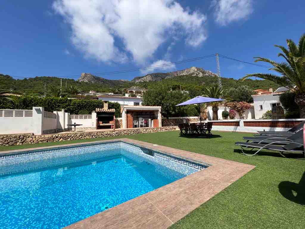 Ціле помешкання з 2 спальнями (1 ліжко queen-size та 2 окремі ліжка), приватним басейном лише для орендарів, зоною барбекю, кухнею на відкритому повітрі, обладнаною кухонними чашками, мікрохвильовою піччю, холодильником та усім кухонним обладнанням. Приватна парковка та можливість зберігати велосипеди в захищеному гаражі. Приголомшливий вид на Морейру в Кальпі та знамениту скелю. Насолоджуйтеся відпочинком із усіма необхідними зручностями.