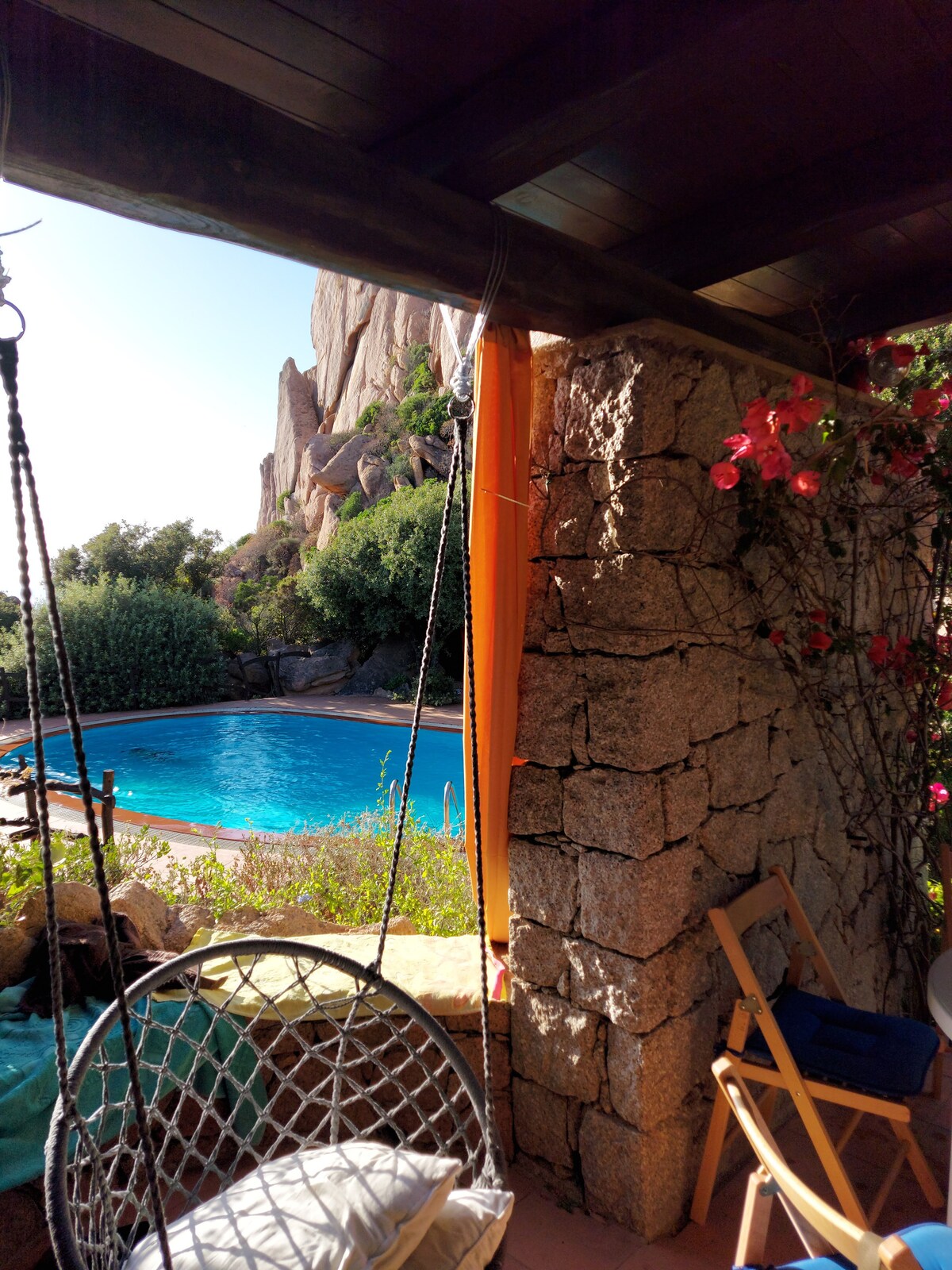 Помешкання розташоване в Residence le Rocce, обладнане вишуканими меблями та оздобленням. Оточений зеленню, він дозволяє насолодитися відпусткою мрії в контексті абсолютного спокою, релаксації, і щовечора різні кольори на заході сонця розмальовують небо. На відстані прогулянки від помешкання розташовані два головні пляжі: Порто-Соле та Кала-Баттістоні. Для шопінгу, Пьяццетта Порто Черво знаходиться в 5 хвилинах їзди, а за запитом – онлайн-уроки фітнесу та приготування типових італійських страв.