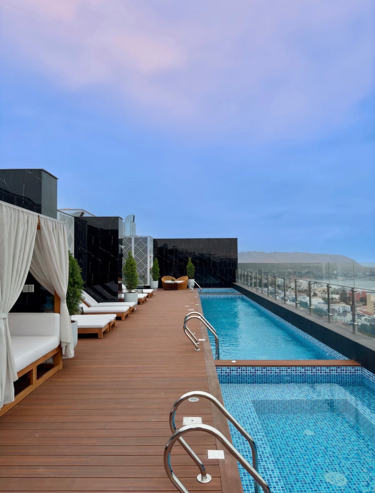 Beautiful smart rooftop Loft in the middle of Miraflores, it has a great view, great location, privacy, and security. Unlimited Hot water on the hot tub (Heater upgraded recently sept-22) so the hottub will be HOT guarantee, Half kitchen, led TV with cable Fast and reliable Wifi. walking distance to supermarkets, and everything. there is only one downside its on the 6th story with NO elevator, but is worth it for the view. You can control tv, music,blinds and lights using Alexa.