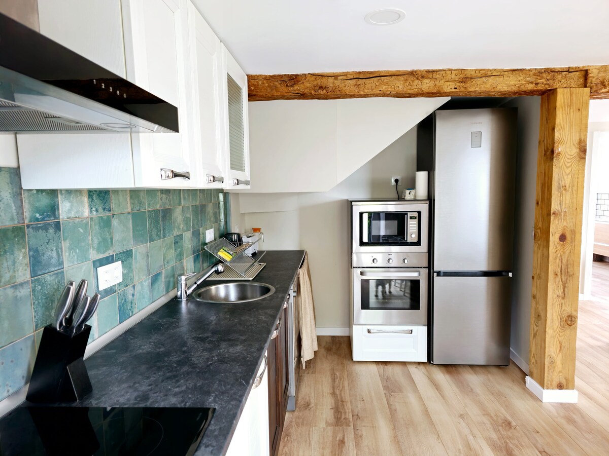 Будинок з великою повноцінною кухнею та вітальнею з домашнім кінотеатром. У ньому є повноцінна ванна кімната з душем. У нас є пральня з пральною машиною та сушаркою. Також є дві спальні з ліжками 1,50x1,90, велика шафа, телевізори та комоди. У нас є офіс для роботи або відпочинку, а також приватний сад і (влітку його аксесуари), а також приватна парковка. ОРЕНДУЄТЬСЯ ЛИШЕ ПЕРШИЙ ПОВЕРХ