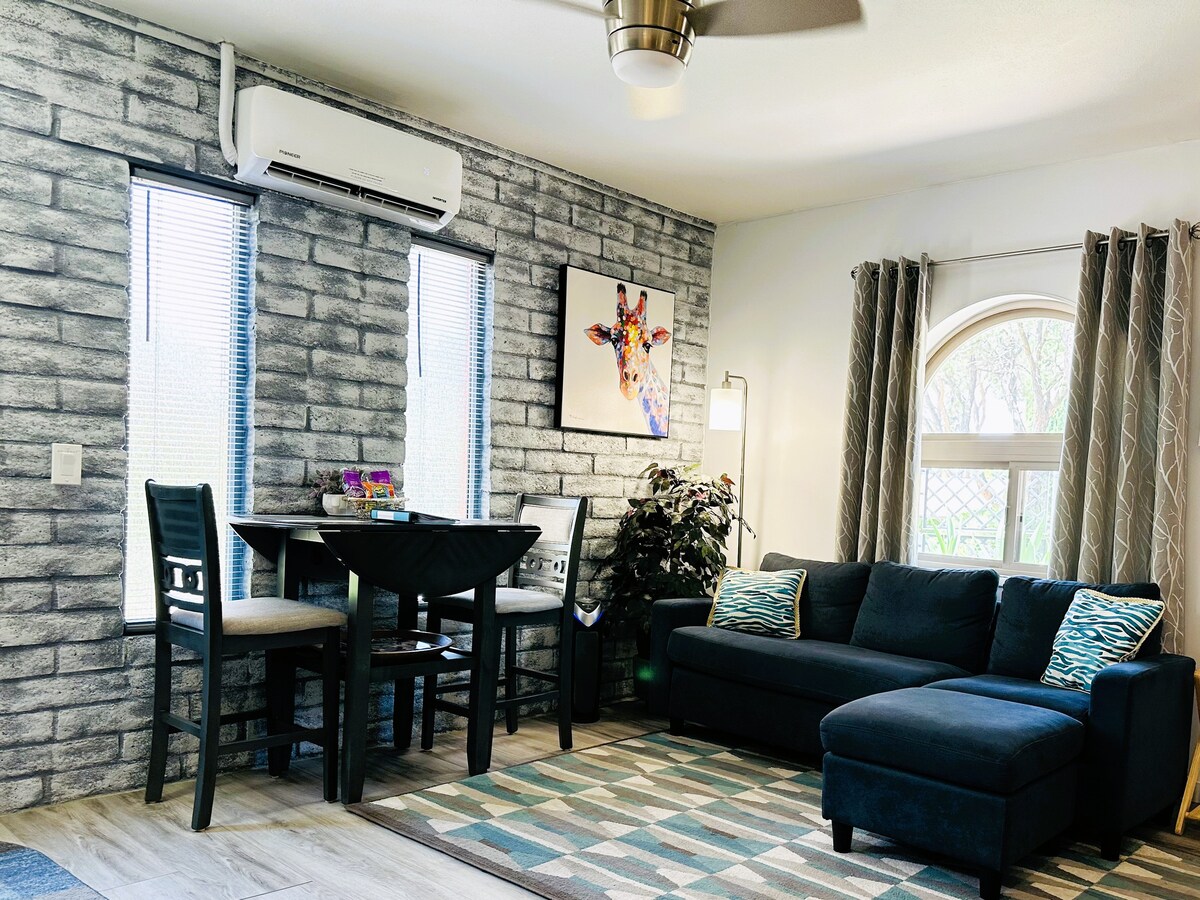 *Нове двоспальне ліжко King size 9/22/25* Розташоване в центрі міста, за декілька хвилин від Седони, Джерома та кількох виноробень. Пішки до дегустаційної кімнати, парку району та пішохідних стежок із видом на Седону. Подивіться на гору Мінгус із заднього двору. Насолоджуйтеся сходом сонця з колібрі та легко переглядайте зірки вночі, оскільки ми є частиною спільноти темного неба! Спокійний і спокійний, ідеально підходить для подорожей для дівчат, сімейного відпочинку/пар, невеликих ретритів, оздоровчих ретритів або представницьких помешкань. Парковка фургона. 2,5 години від Гранд-Каньйону