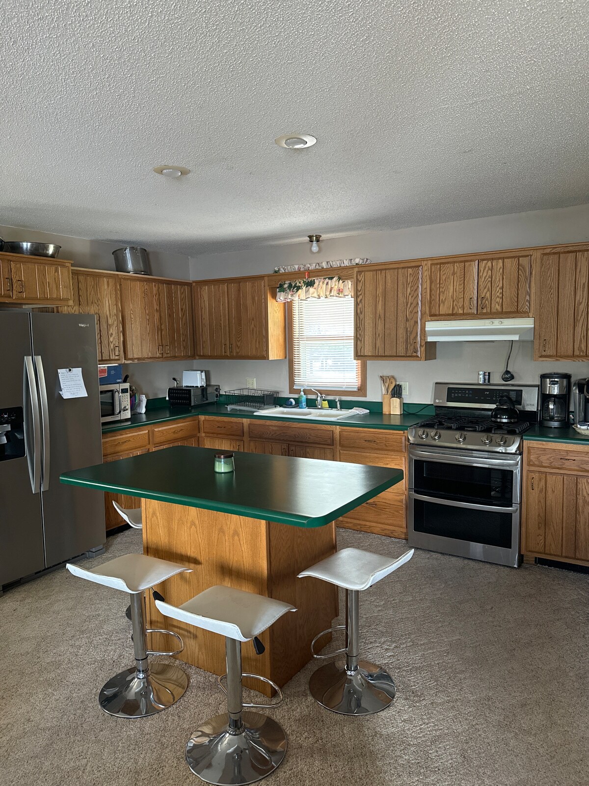 Поруч із усім у Маршаллі, ресторани, коледж, центр міста, шопінг! 3 спальні, 2 ванні кімнати, гігантська відкрита кухня, повний підвал з тренажерним обладнанням. На кухні є вся побутова техніка, окрема пральня з пральною машиною, сушильною машиною (поруч), вхідними дверима та прямим доступом до прилеглого гаража. У головному люксі є душ, велика шафа та подвійні раковини. Доступ до Інтернету та кондиціонера хороші та нові. Чудова атмосфера для роботи, ігор або обох. 4 смарт-телевізора Roku з Hulu та Netflix