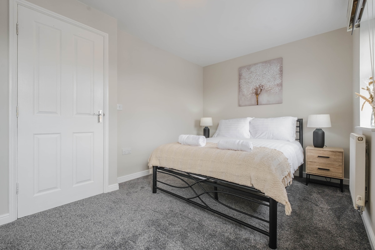 Welcome to our spacious and comfortable property, perfect for families, groups, or business travellers seeking a cosy and well-equipped home away from home. The property has a living room and 5 bedrooms (4 double beds and 4 single beds) comfortably sleeping up to 8 guests and 11 guests if they are willing to share. Each room is thoughtfully furnished with smart screen TVs, extra bed sheet and duvet in bed drawers. There is an extra visitor's mattress in the living room.