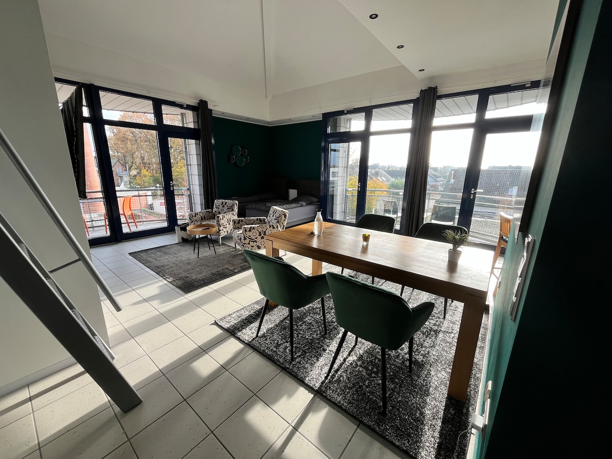 Наша стильно мебльована квартира площею близько 75 кв. м розташована на краю житлового району на східній околиці міста Рейн. До центру міста близько 3,5 км. Супермаркет, пекарня, м 'ясник, автобусна зупинка тощо також розташовані неподалік. Крім того, він розташований неподалік від Emsradweg і Dortmund-Ems-Kanal. Велосипеди можна безпечно припаркувати в гаражі.
