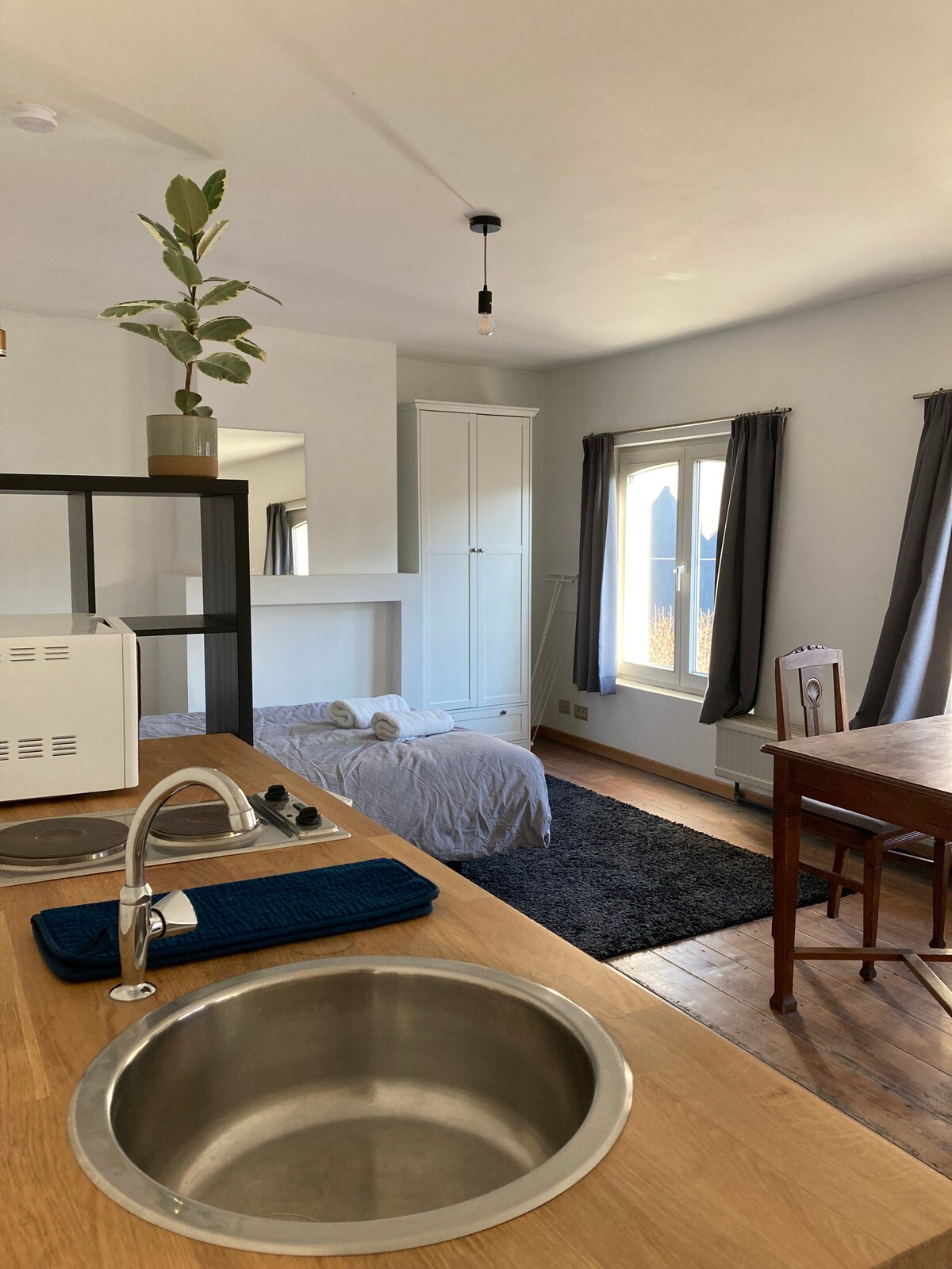 Нова студія недалеко від центру Гента. У студії є власна кухня та окрема ванна кімната. У дуже тихому таунхаусі, в тупику, ви можете насолоджуватися всіма зручностями. Студія щойно була повністю відреставрована, дуже затишно мебльована та обладнана всіма зручностями, щоб зробити ваше перебування приємним. Поруч із трамваєм, а також парковка в декількох метрах. Поруч кілька магазинів та ресторанів.