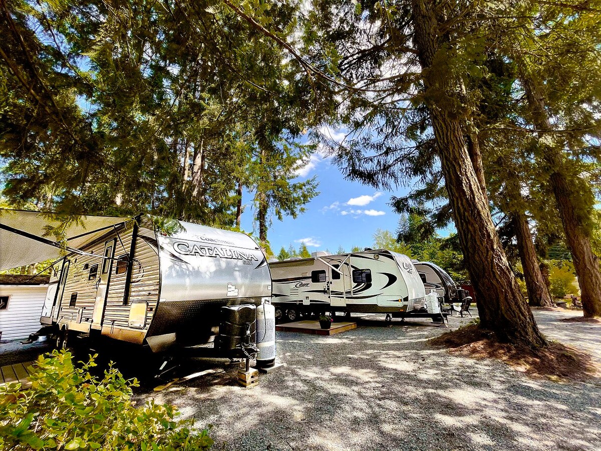 Приходьте розслабитися в нашому чудово відремонтованому трейлері для подорожей. Вам обов 'язково сподобаються перероблені дерев' яні оздоблення та вінтажний шарм. Розташовані серед диких квітів та ялиць на кутку нашого помешкання, ви матимете сонце та приватність. Вона має повністю функціональну кухню, ванну кімнату з душем та велике зручне ліжко з м 'якою затишною білизною. Ми знаходимося в 5 хвилинах їзди від Гангу та в безпосередній близькості від пляжів, озер, поля для гольфу, кінотеатру, парома, велосипедних стежок, тенісних кортів тощо.
