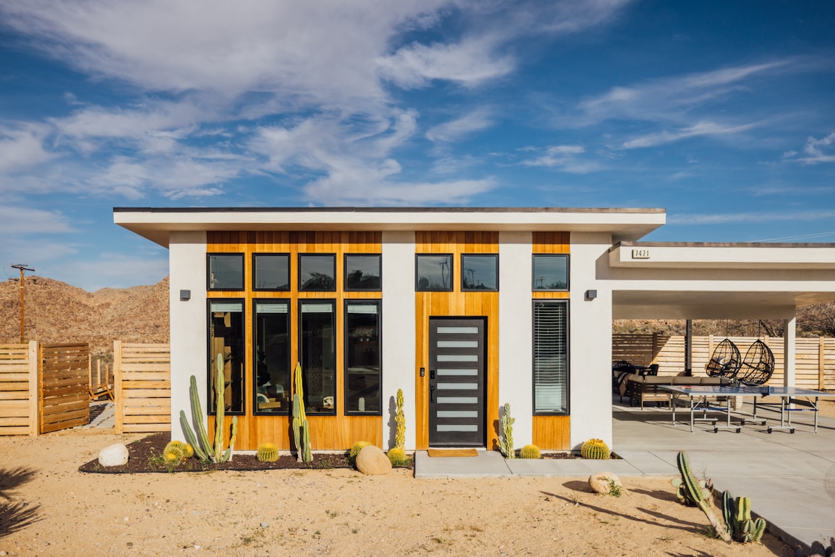 Бунгало Sagebrush — наш сучасний прихисток у пустелі — розташоване майже на двох недоторканих акрах чистого спокою. Прокиньтеся до сходу сонця, просочившись через високі 10-футові вікна, подивіться на зірки з приватної гідромасажної ванни, оточеної пишною пустельною флорою, і зібрайтеся навколо чаші для багаття під величезним, наповненим зірками неба. Насолоджуйтеся спокійною самотністю в пустелі - всього в декількох хвилинах від національного парку Джошуа-Трі та серця міста. ✔ 2 спальні з великим двоспальним ліжком ✔ Повноцінна кухня ✔ Гідромасажна ванна ✔ Яма для багаття ✔ Барбекю ✔ Високошвидкісний Wi-Fi → Дізнайтеся більше нижче!