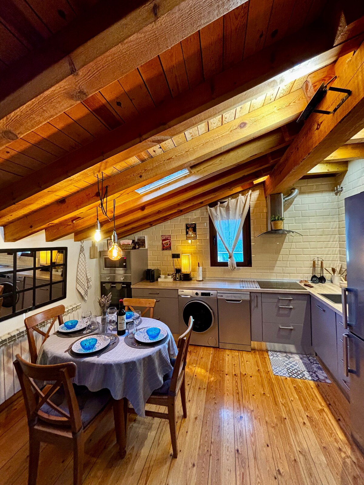 Просторий таунхаус із 7 ліжками, 4 ванними кімнатами та приватним двором площею 1000 м², оточеним традиційними будівлями, зокрема кам'яною їдальнею та другою вітальнею. У сільському декорі використовуються справжні фермерські інструменти. Оснащений повноцінним опаленням, пеллетними плитами, барбекю та Wi-Fi. Тиха місцина, за 13–24 хвилини від водосховища Лас-Венсіас і каньйону Осес-дель-Дуратон. Село з кортом для падл-тенісу.
