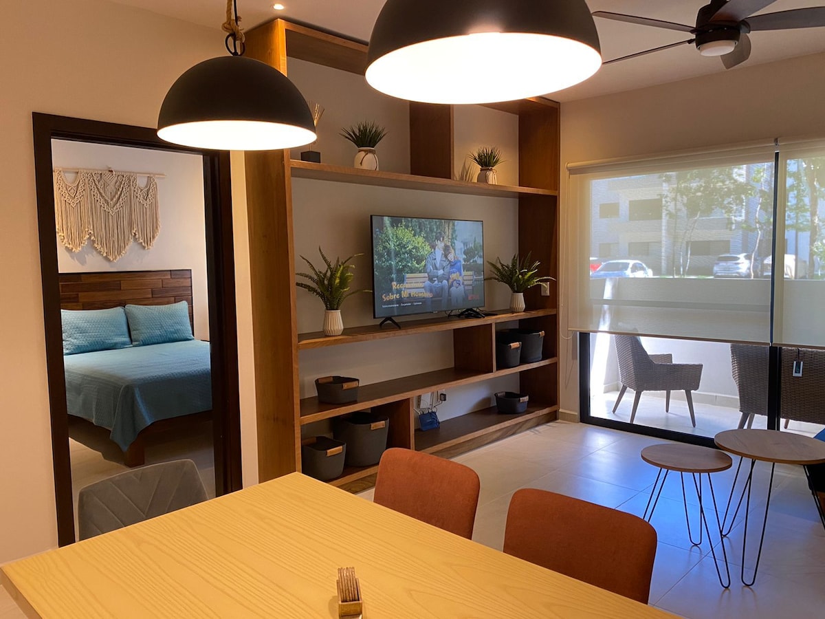 Ласкаво просимо до вашого помешкання далеко від дому! Наша квартира з 1 спальнею, розташована в абсолютно новій сучасній вежі в центрі Плайя-дель-Кармен, - це ідеальне поєднання комфорту та стилю. Це частина кондомініуму, який пропонує найкраще з обох світів: затишок і простора квартири, а також виняткові послуги, які зроблять ваше перебування неймовірно комфортним.