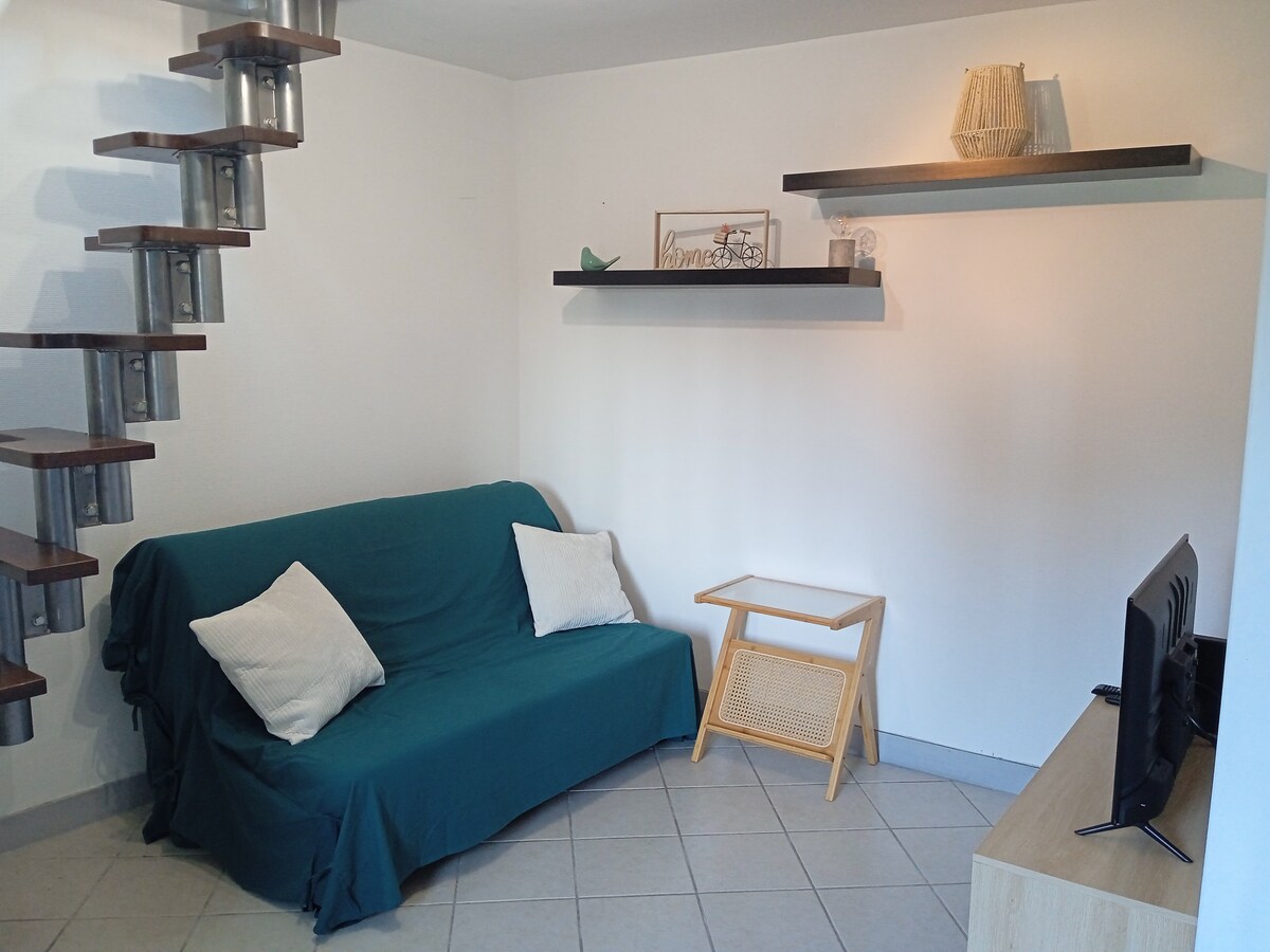 У центрі середньовічного міста Богенсі, 2 кімнатна квартира площею 45 м², відремонтована для 4 осіб. Ви оціните комфорт, шикарний декор, а також прямий доступ до всіх магазинів, а також до різних піцерій, пивоварні або ресторанів для гурманів (на будь-який смак за будь-якими цінами). І все пішки! Квартира складається з: - Кухня з тарілками,LV, духовкою, кавоваркою... - Вітальня зі столом та диваном-ліжком. - Спальня з ліжком 140 - SDB з пральною машиною. - WC