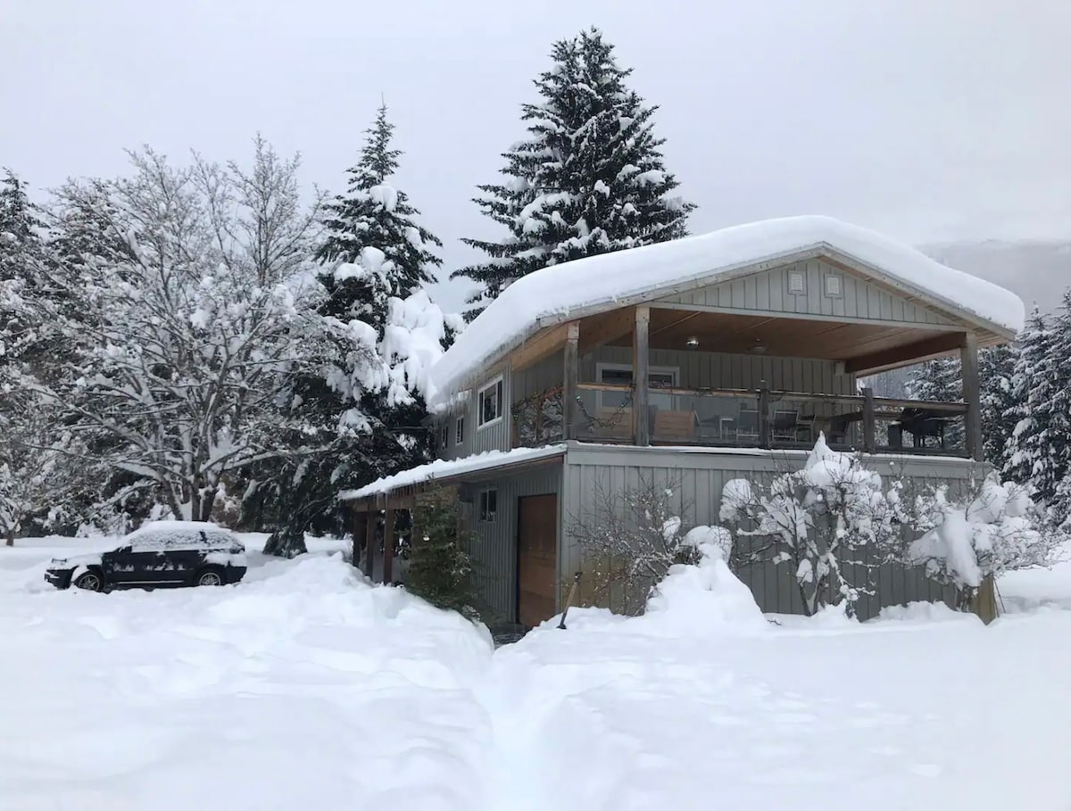 Birken House is located above a home based bakery in the grounds of a 110-year old farmhouse, and is rumoured to be the location of an original stagecoach stop on the Douglas Trail. The suite is south facing, with tasteful decor and big folding doors opening on to an awesome view . It's rustic but contemporary; airy in summer and cosy in winter. It’s 30 minutes north of Pemberton, and is a great base from which to explore Birkenhead Provincial Park, Gates and Anderson Lakes