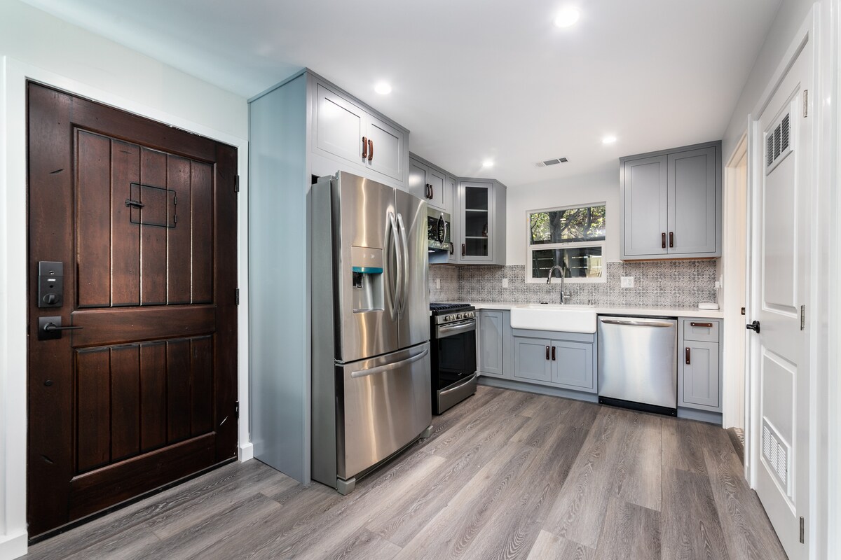 Цей нещодавно відремонтований сучасний котедж у фермерському будинку площею 500 кв. футів, розташований у безпечному, пішохідному районі, є ідеальним місцем для відпочинку двох дорослих. Це світле, яскраве помешкання з повністю обладнаною кухнею та власною ванною кімнатою з кварцевими стільницями, дерев 'яною підлогою, ванною кімнатою, облицьованою мармуровою плиткою, цілком новою технікою та меблями. Ми знаходимося всього за милю від центру Калвер-Сіті, в 6 милях від Санта-Моніки та в 15 хвилинах від LAX.