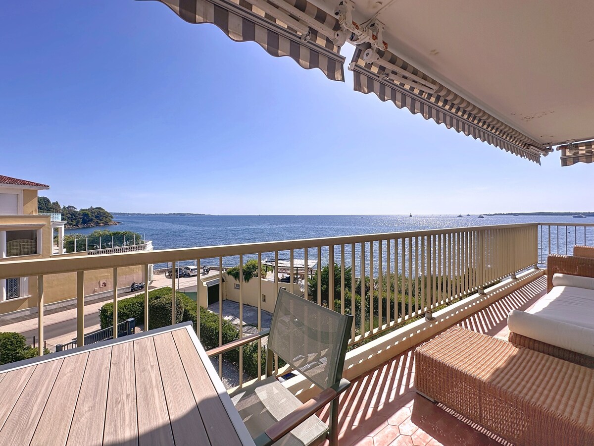 «ANTIBES LES PINS RESIDENCE» -2 BR З 3 TERRACES-SEA FRONT-LAST FLOOR-EXPO EAST/SOUTH/WEST... Квартира з видом на море розташована на верхньому поверсі розкішної резиденції безпосередньо над парком EXFLORA. Прямий доступ до пляжу (100 м)- немає дороги для перетину. Безпечний безкрайній басейн із водоспадом + солярієм, а також дитячий басейн і санітарна зона: відкриті цілий рік і під наглядом у липні + серпні. Знижений доступ до мобільності (доступ до підвалу, квартири, басейну та пляжу).
