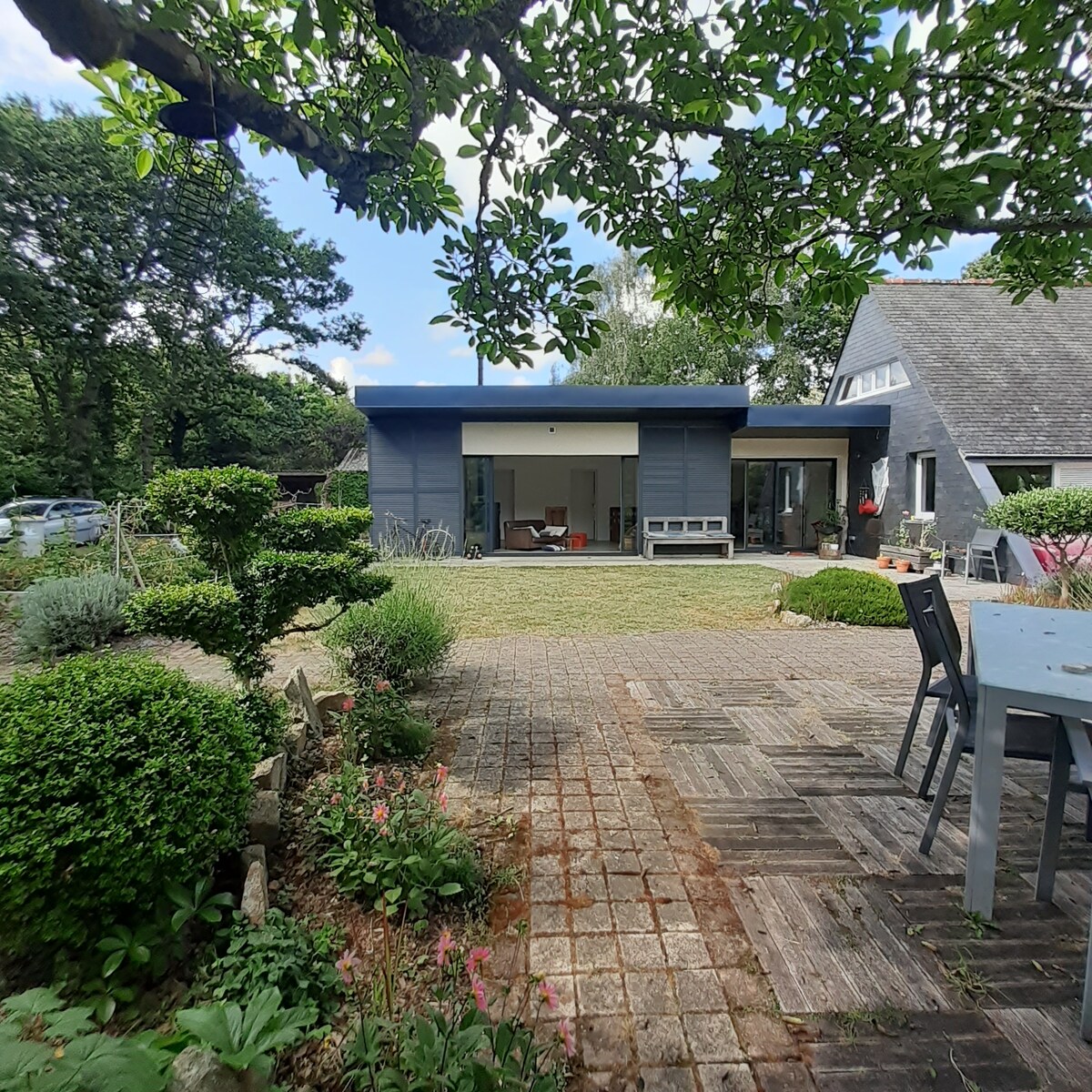 Відпочиньте в цьому чарівному сучасному дерев 'яному заміському будинку. Ідеальне розташоване між Квімпером і Брестом за 20 хвилин від пляжів затоки Дуарнене та на вході до півострова Крозон. Повністю обладнана кухня, Wi-Fi, підключені сітки, диван-ліжко, італійський душ, сад... Насолоджуйтеся сауною, джакузі, великою дерев 'яною терасою на півдні, щоб поповнити заряд акумуляторів на ніч , вихідні, тиждень...