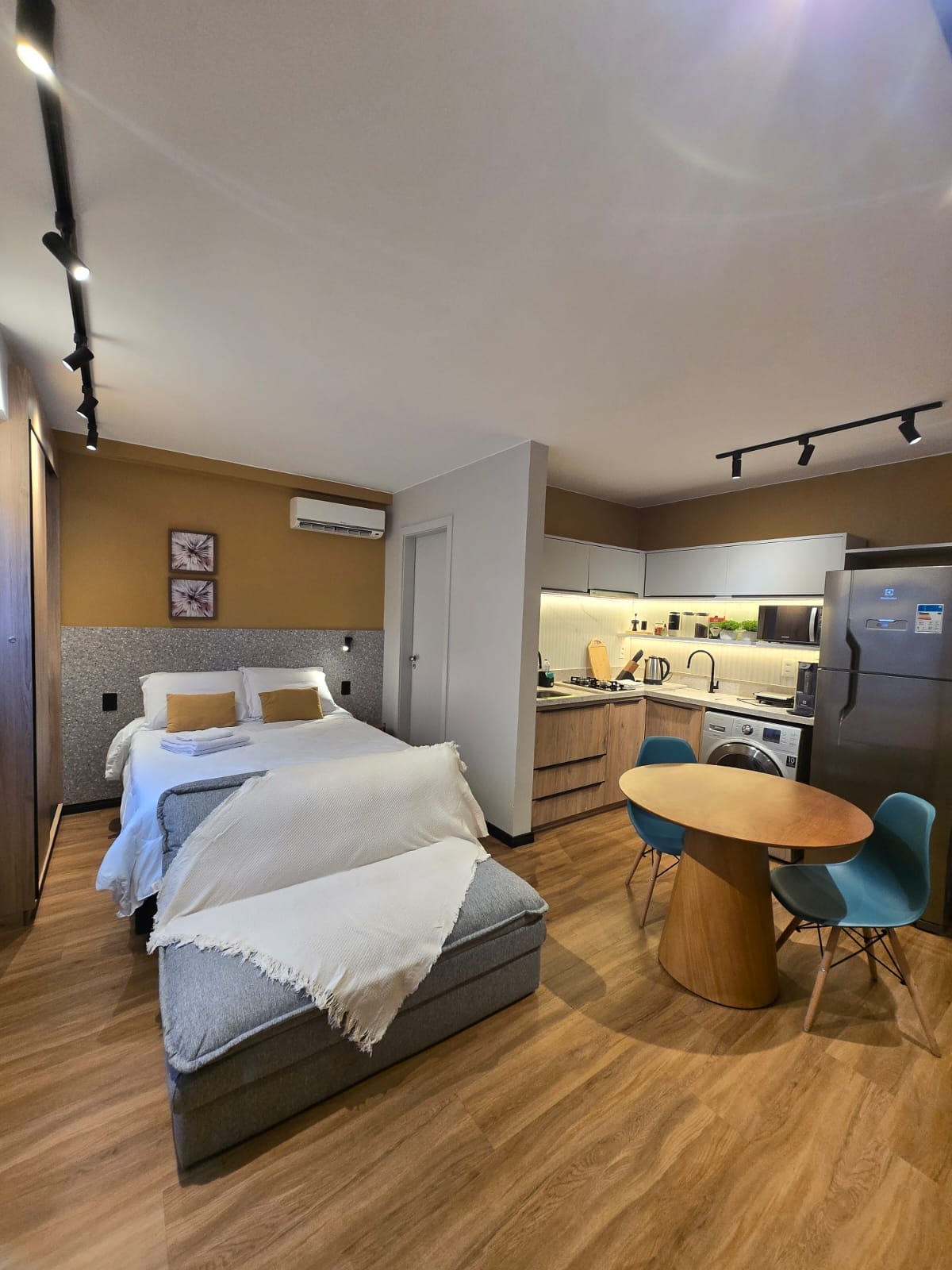 Супер повний набір з усіма зручностями, необхідними для насолоди чудовими днями в Бразилії. Дуже добре оформлений і з чудовим розташуванням і всім необхідним для вашого комфорту. Smart TV, швидкий Wi-Fi, повністю обладнана кухня, кондиціонер, фен, праска тощо. У будівлі є цифровий міні-маркет, доступний для гостей, з базовими речами, які можуть зробити ваше перебування ще комфортнішим. Інформація у вестибюлі.