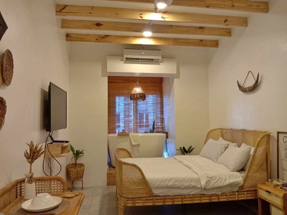 Ідеально розташований в центрі ресторану та розважального району Poblacion, наш міський домашній спа-центр розташований на 6-му поверсі бутикової кондомініумної будівлі з цілодобовою охороною. Наша 1-кімнатна/студія має дивовижний вид, вражаючий інтер 'єр і домашні спа-салони, включаючи джакузі, тропічний душ, бомби для ванни та регульований масажний стіл. Ми пропонуємо ідеальне місце для пар, соло-мандрівників, ділових мандрівників, коротких подорожей та відпустки. Ласкаво просимо!