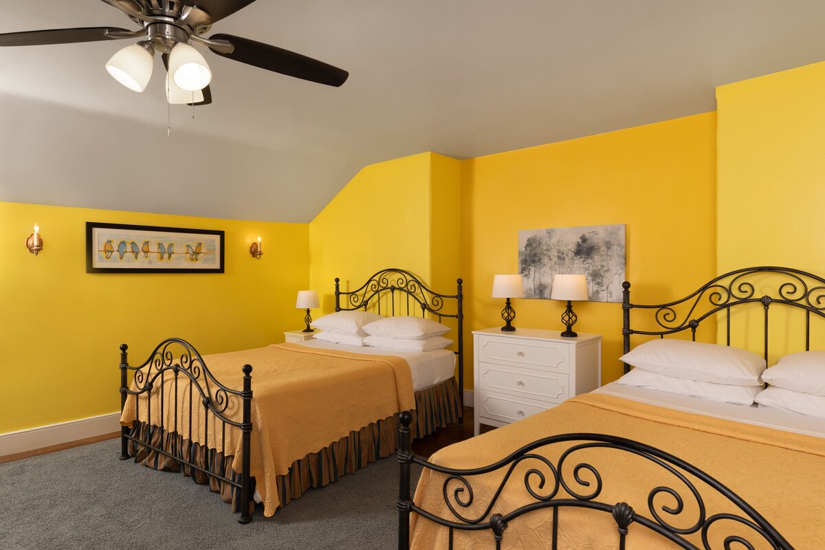 The Bailey Suite features 2 spacious bedrooms, one with a queen and daybed and one with two twin beds. It has its own private kitchen with all appliances for your use. The kitchen is adjacent to your private living room where you can relax after exploring downtown Carlisle. The suite also includes two private bath rooms with a rainfall shower-head. You'll enjoy our complimentary spa like products, complete with hand soap, shampoo, conditioner, and body scrub.