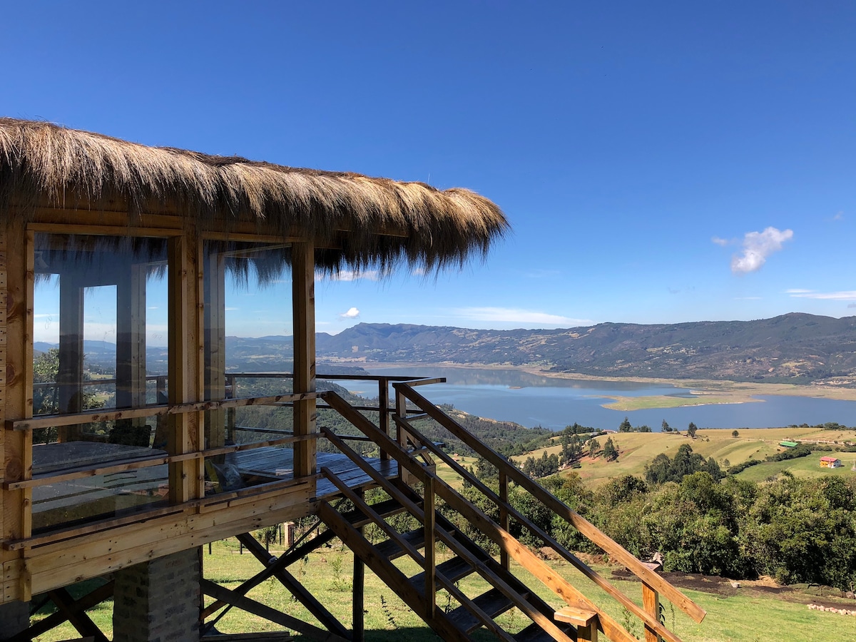 Прийдіть і отримайте унікальний досвід: розкішний глемпінг з прекрасним краєвидом на водосховище Сан-Рафаель, сучасний глемпінг на Калера Кундінамарка, всього в 25 хвилинах від Боготи, ви можете насолоджуватися терасою головного будинку та приємним багаттям на відкритому повітрі.