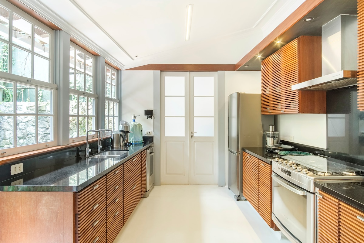 Прокиньтеся на природі в Параті! Ipê Bangalô зачаровує високою правою ногою, чарівною архітектурою та чистим стилем. Просторі апартаменти, обладнана кухня, гамаки та додатковий сніданок на приватній терасі. Ідеальний відпочинок для сімей, груп або мандрівників, які шукають комфорт, красу та зв’язок із зеленню, лише за кілька хвилин від історичного центру.