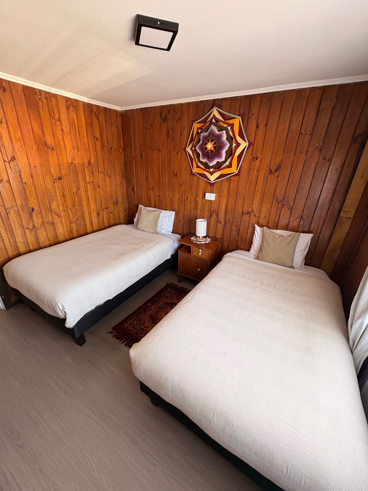 Ласкаво просимо В наш затишний зруб площею 63 м² у Неблі, всього в 12 км від Вальдівії, ідеально підходить для насолоди моментами з родичами або друзями. Наш зруб вміщує до п 'яти осіб, з двома спальнями. У головній кімнаті є двоспальне ліжко, ідеально підходить для пар. У другій кімнаті є зруб і 1 1/2 квадратного ліжка, що ідеально підходить для сімей або групи друзів У помешканні є ванна кімната, повністю обладнана кухня, дров 'яна піч, приватний паркінг
