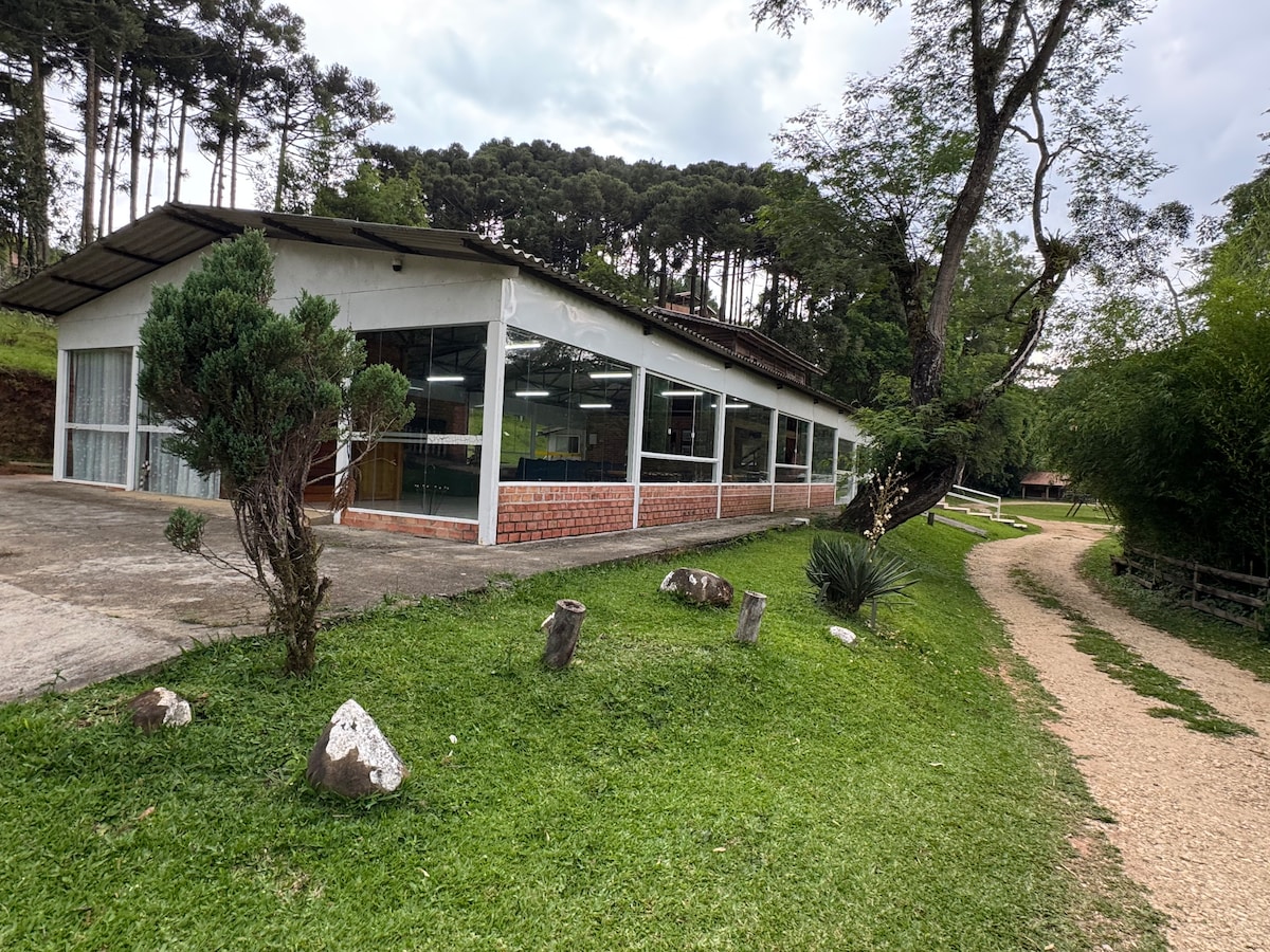 "Youtube Casa do bosque/floresta - Curitiba"; casa 2 pisos e 2 kitnets; 6000 m2 bosque trilhas; Carrocel, Mini Basquete, Casa Boneca e brinquedos ; Caminhadas Passeios, lado Parque Tingui, entre Sta Felicidade e Ópera Arame, Uni Meio Ambiente, P. Tanguá, Barigui, São Lourenço. Churrasqueira grande, Abrigos carros (3); Pinheiros seculares, samambaias gigantes, mina água histórica banho "Inca", pequenos açudes, flores. Pizza, restaurante , padaria e supermercados, parques, bem próximos .