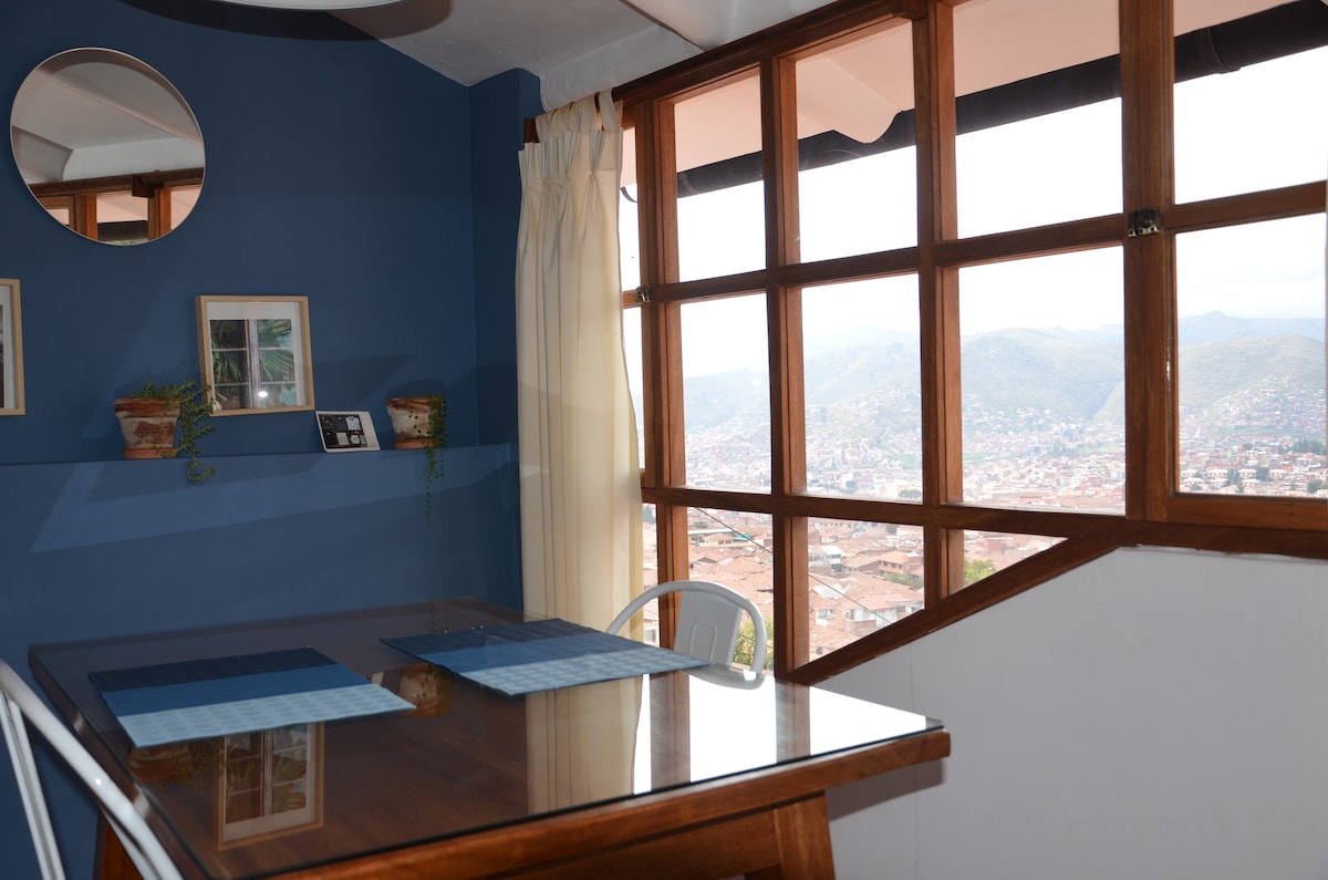 Cute Apartment with a beautiful view of Cusco. Located in the traditional neighborhood of San Blas,it's an ideal spot for couple-family. Righ here family-friendly activities, nightlife, interesting museums,lovely churches.We're just 10 min from the main square. You’ll love our space due to location, the comfy bed, the coziness,amazing view,home feeling.We can offer you AIRPORT PICKUP & TRANSFER,besides we also count with a reliable TRAVEL AGENCY with professional staff