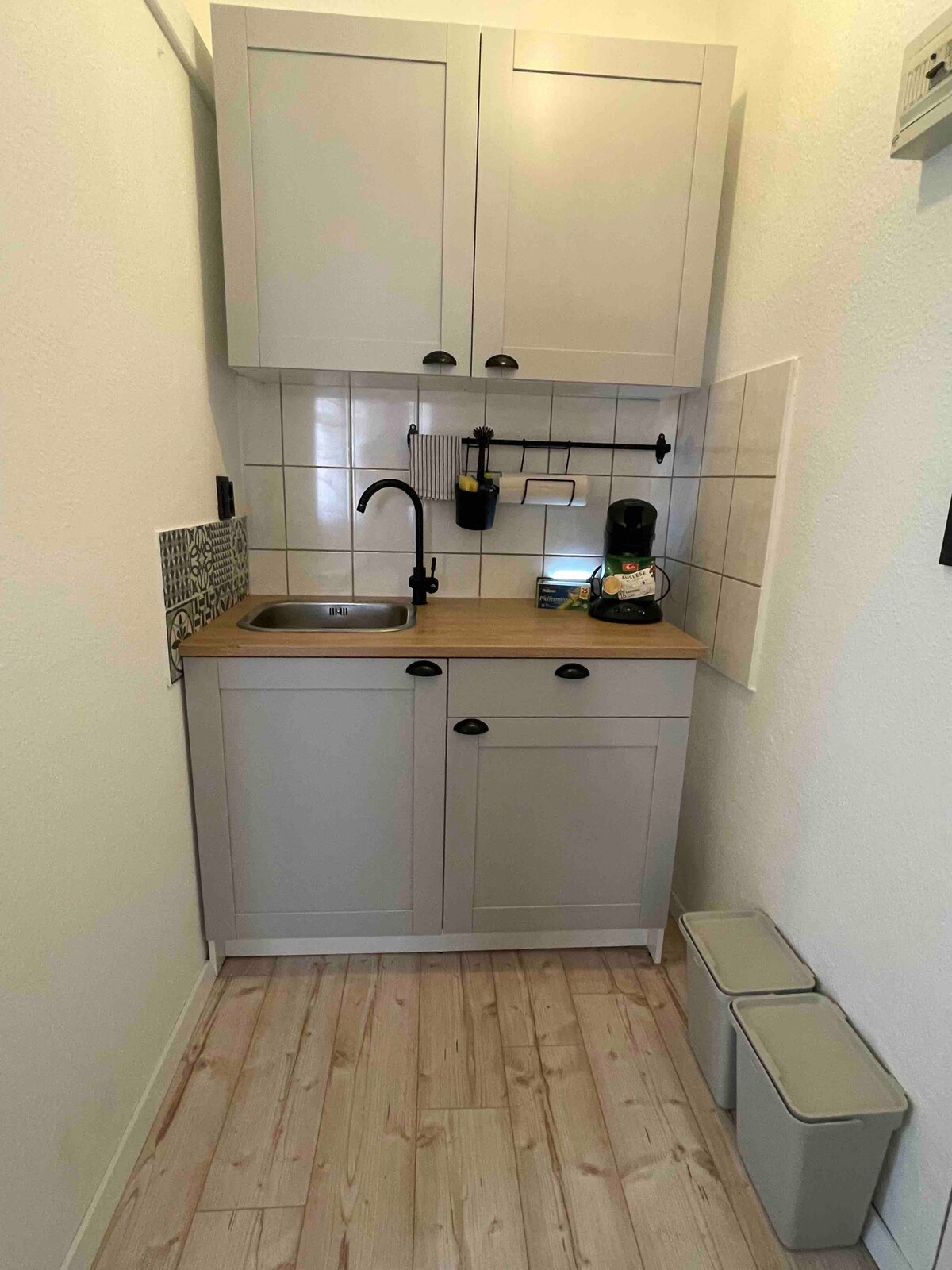 Дружня квартира була повністю модернізована у 2017 році і має площу близько 20 квадратних метрів. Вона має високоякісне ліжко розміром 1,40 м, нову кухню з кухонною шафою з кавоваркою, тостером та окремою ванною кімнатою з денним світлом та душем. Також є зручна зона відпочинку зі столом та телевізором. Є окремий вхід і вихід до великого саду з сидіннями. Можна включити велосипеди.