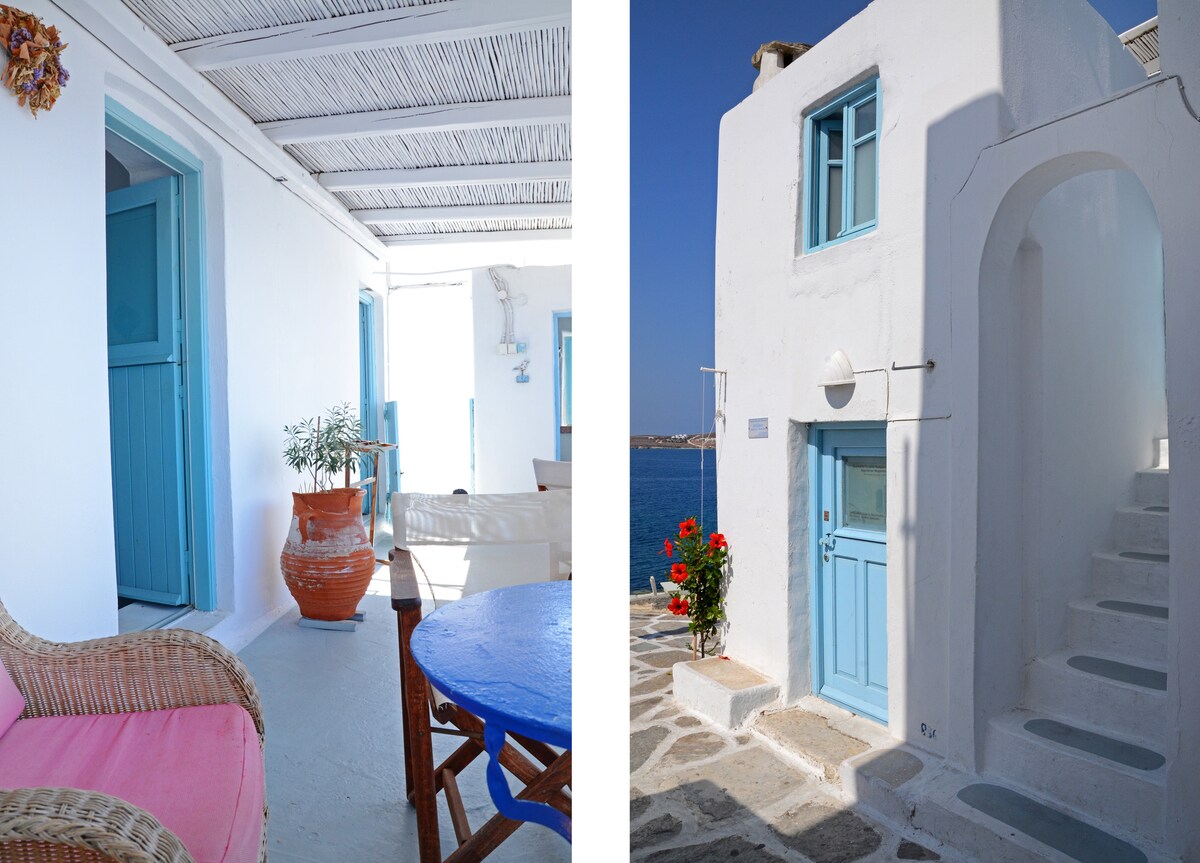 BLUE MAISONETTE is a three-level house with 3 bedrooms (a twin bed, two single beds, three single beds), 2 bathrooms, one plan kitchen-living room. It can accommodate a maximum of 7 people .On the upper floor, you can enjoy a view of the port of Paros and on the ground floor level, you will find a fully equipped kitchen with a living room around the fireplace. You can also enjoy our porch with direct access to our garden