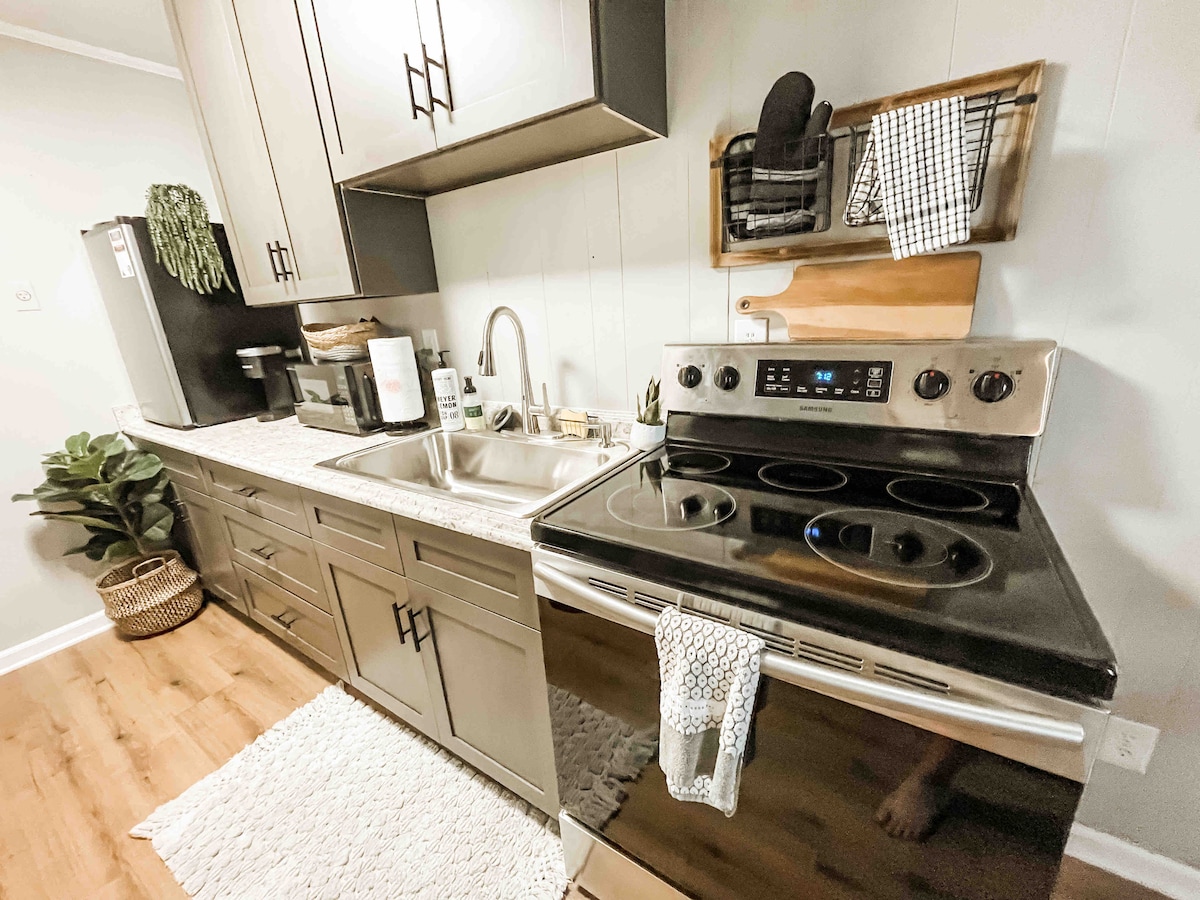 Наш дерев 'яний будинок, розташований в історичному районі плантацій між Саммервіллом і Чарльстоном, пропонує приватність, комфорт і зручність. У цьому помешканні площею понад 850 кв. футів є повністю обладнана кухня та ванна кімната, 2 двоспальні ліжка, двоспальне ліжко та достатньо житлового приміщення. Є окремий вхід, тому приходьте і йдіть, коли забажаєте (ми поруч, якщо вам це потрібно). У декількох хвилинах їзди від Міддлтон-Плейс, Дрейтон-Холл і Магнолія-Гарденс, легко дістатися до Чарльстона, історичного С 'Вілла, пляжів і полів для гольфу. *Тепер із Wi-Fi*
