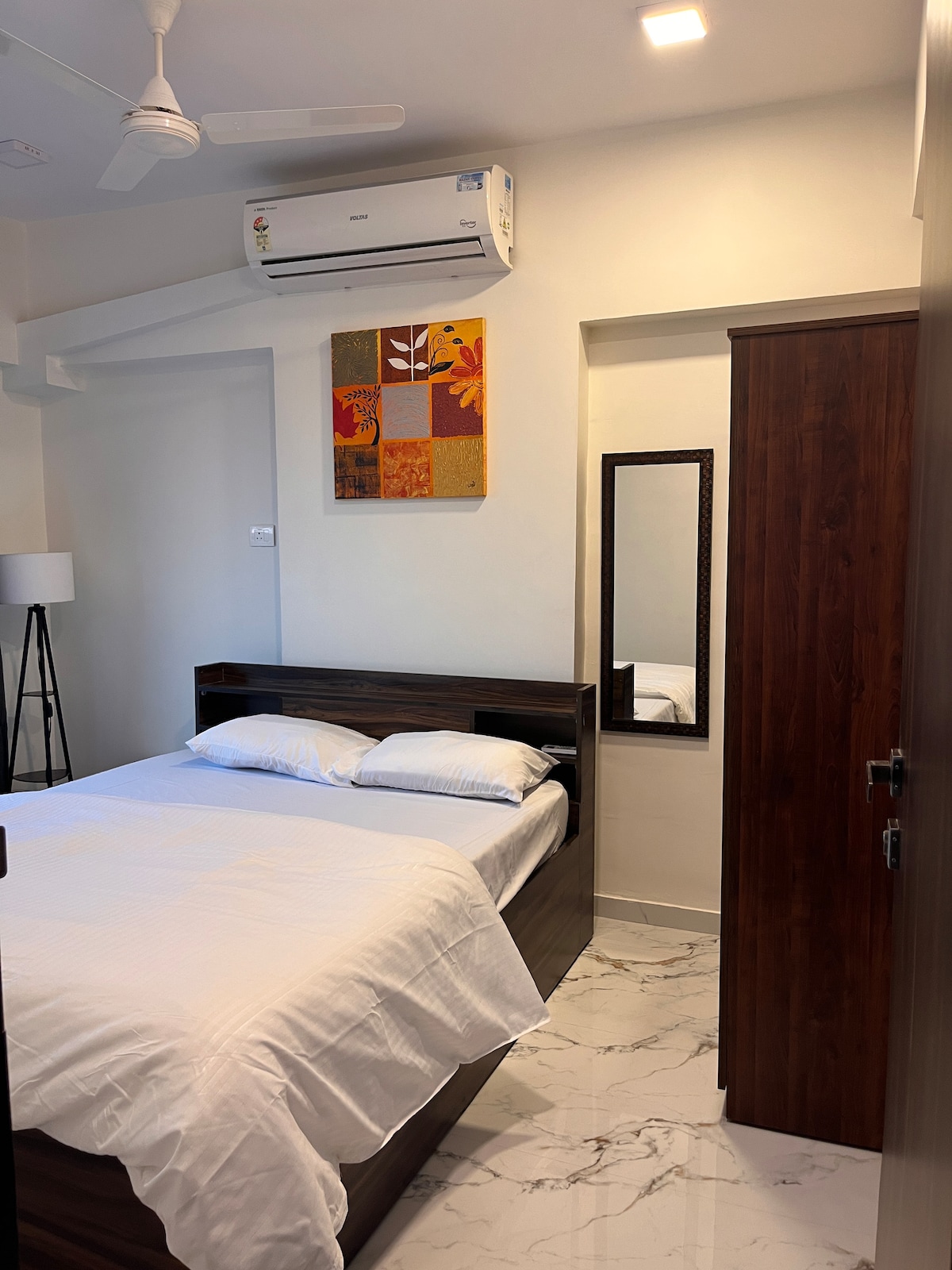 Ласкаво просимо до нашої красивої квартири-студії з однією спальнею в Мумбаї, яка пропонує розкішний невеликий будинок з ліжком розміру King size і окремою повністю обладнаною кухнею. У квартирі-студії є такі зручності, як обідній стіл на двох осіб, міні-холодильник, мікрохвильова піч, пральна машина, індукційна плита, телевізор з плоским екраном, кондиціонер тощо. Цілою будівлею керує професійна компанія з гостинності, яка забезпечить вам більшу приватність і комфорт під час вашого перебування.