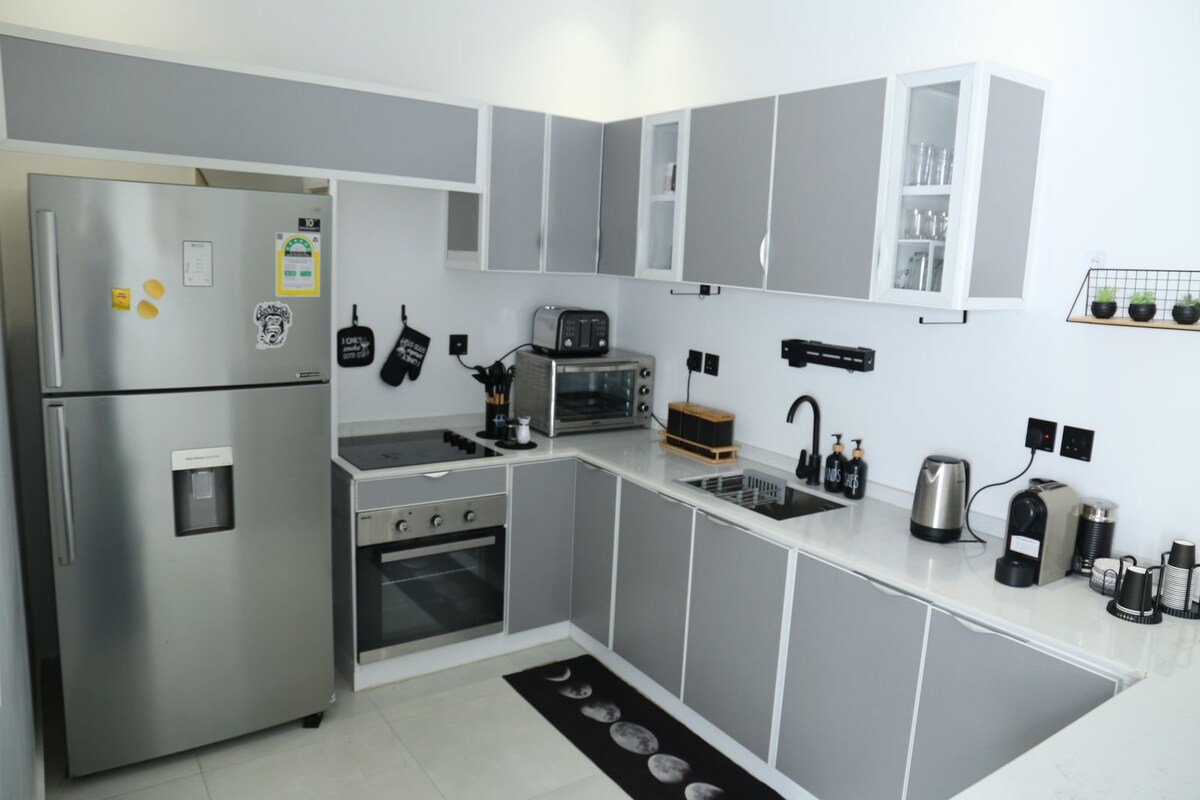 *Ласкаво просимо до вашого помешкання, оточеного садами та пішохідними доріжками. * Інтелектуальні зручності для людей з особливими потребами. * Розкішні офтальмологічні готельні меблі з усім необхідним. * Окрема спальня з специфікаціями для вас: 1. Простора головна ванна кімната з тропічним душем для відпочинку . 2- Окрема гардеробна кімната з просторими шухлядами для одягу 3- Приватний і елегантний 55-дюймовий смарт-сеанс, щоб спостерігати за тим, що вам подобається, відпочиваючи на ліжку готелю King's. *Дуже простора лаунж-зона з 65-дюймовим смарт-екраном, кавовим куточком і розслаблюючим куточком. *Кухня з кухонним приладдям для приготування їжі з духовкою, холодильником, пральною машиною та спеціальним куточком для прасування.