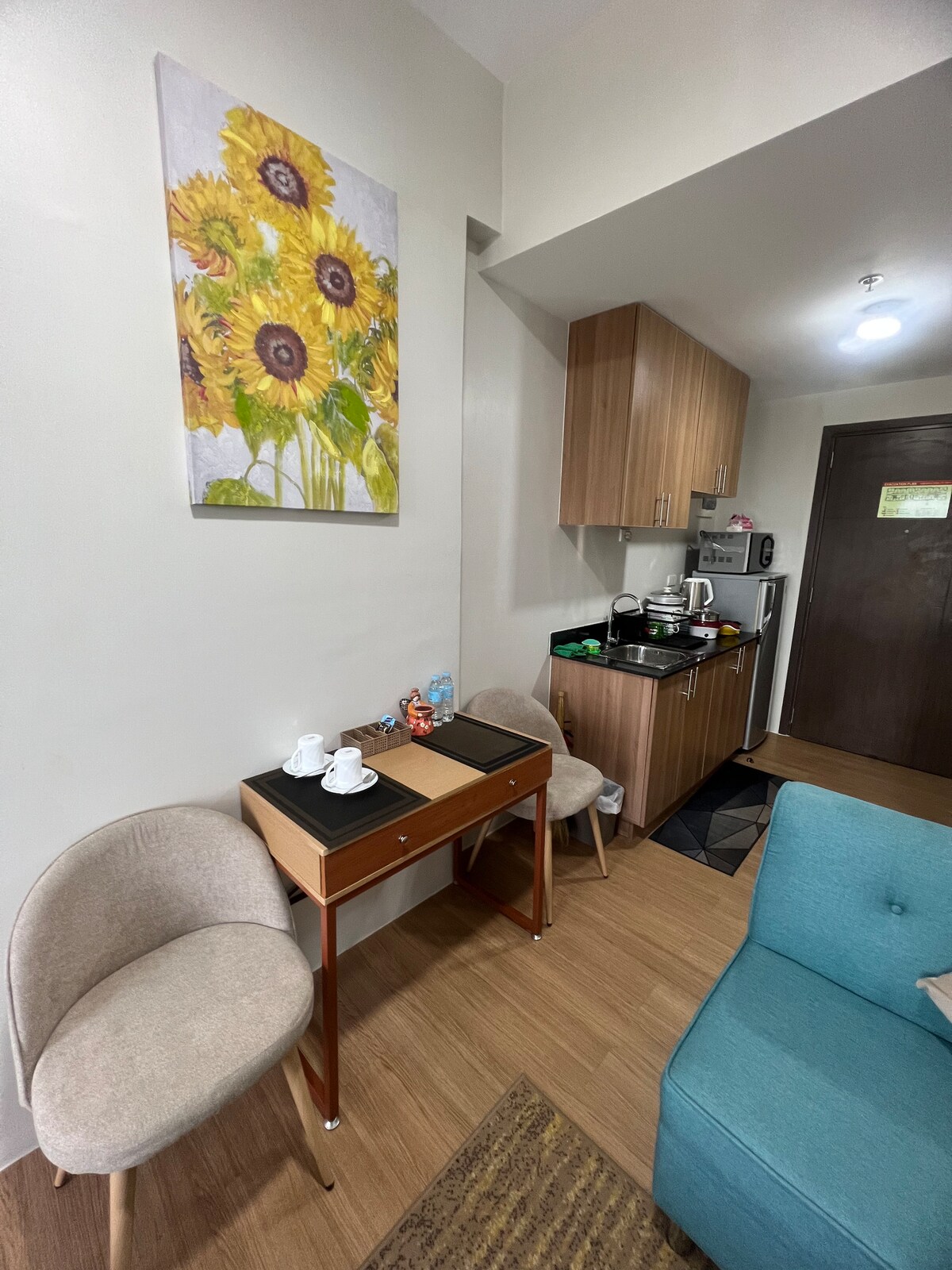 Кондомініум знаходиться в декількох хвилинах ходьби від ресторанів, магазинів, лікарні та торгового центру Ayala. Околиці безпечні. У вестибюлі цілодобова охорона та призначений персонал. У будівлі є ліфт. Інтер 'єр квартири-студії затишний і зручний. У помешканні є 2 двоспальні ліжка. Він може прийняти до 3 гостей. Доступ ДО ІНТЕРНЕТУ WI-FI - ідеально підходить для інтернет-дзвінків і веб-серфінгу.