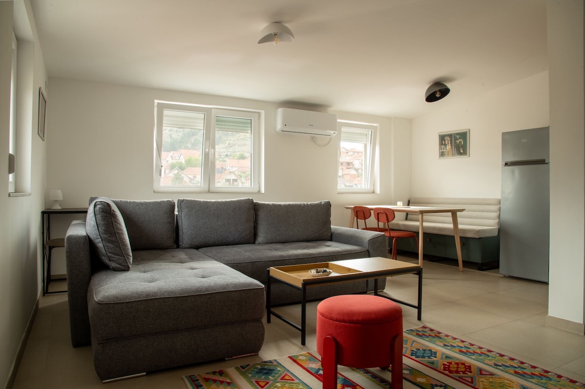 Ви почуватиметеся як удома. Або краще. Квартира «At Nan 's», розташована в центрі Іванджіці Західної Сербії, пропонує комфортне перебування. Маючи 2 спальні, одну вітальню, кухню, їдальню, ванну кімнату та терасу, вона зручна для відпочинку та ділових поїздок і може вмістити 6 осіб. Вона оснащена опаленням і кондиціонером, безкоштовним Wi-Fi та парковкою, 3 смарт-телевізорами, кавоваркою еспресо, чайником, праскою та дошкою, феном та багатьма зручностями, які відповідають потребам гостей.