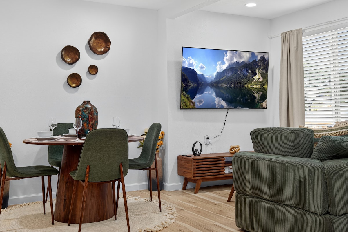 Ласкаво просимо до Oasis at 302! Наша сучасна та затишна квартира з 1 спальнею розташована в престижному районі Оук-Лон. Цей затишний номер пропонує ідеальний баланс між зручністю міста та спокійним відпочинком. Усього за 10 хвилин від центру Далласа ви матимете швидкий доступ до найпопулярніших пам 'яток, ресторанів і заходів на свіжому повітрі. Ідеально підходить як для відпочинку, так і для досліджень!
