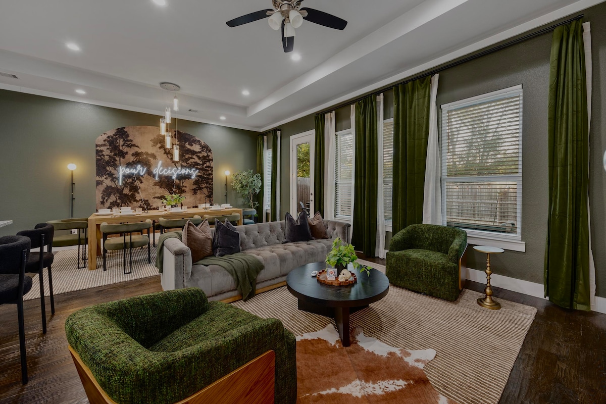 Яскравий і новий, цей просторий будинок із 5 спальнями розташований у центрі Трініті-Гровс і знаходиться в безпосередній близькості від усього, що може запропонувати Даллас! Це місце для відпочинку з 2 сучасними житловими приміщеннями та розкішним обіднім столом ідеально підходить для вашої наступної відпустки! Візьміть друзів і родичів і насолоджуйтеся сонцем з ідеальної тераси на даху або дивіться улюблені фільми на розкішних шкіряних диванах! У цьому помешканні з 7 ліжками та 3,5 ванними кімнатами достатньо місця для всіх ваших гостей!